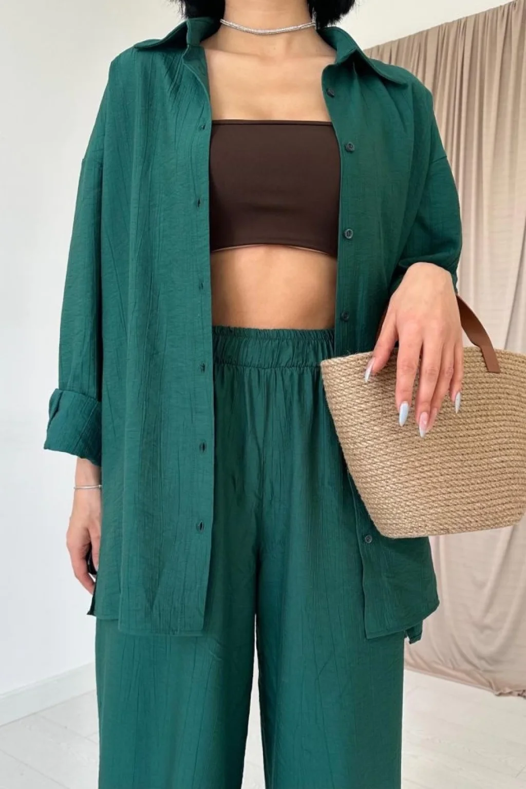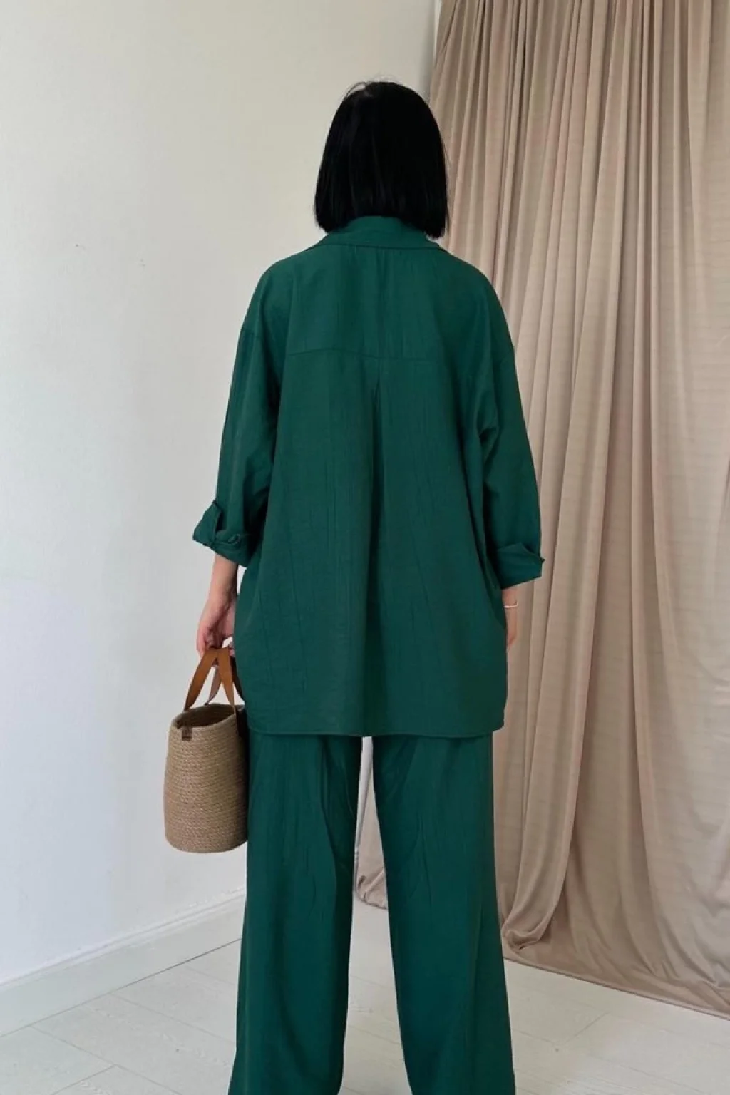 <p>Zümrüt Alice Gömlek Ve Bol Kesim Pantolon Takım</p><br> <p>Modelin Ölçüleri: Boy:165, Kg:55, Göğüs:90, Bel:72, Kalça: 100</p><br> <p>Modelin üzerindeki ürün M/38 bedendir</p><br> <ul> </ul>