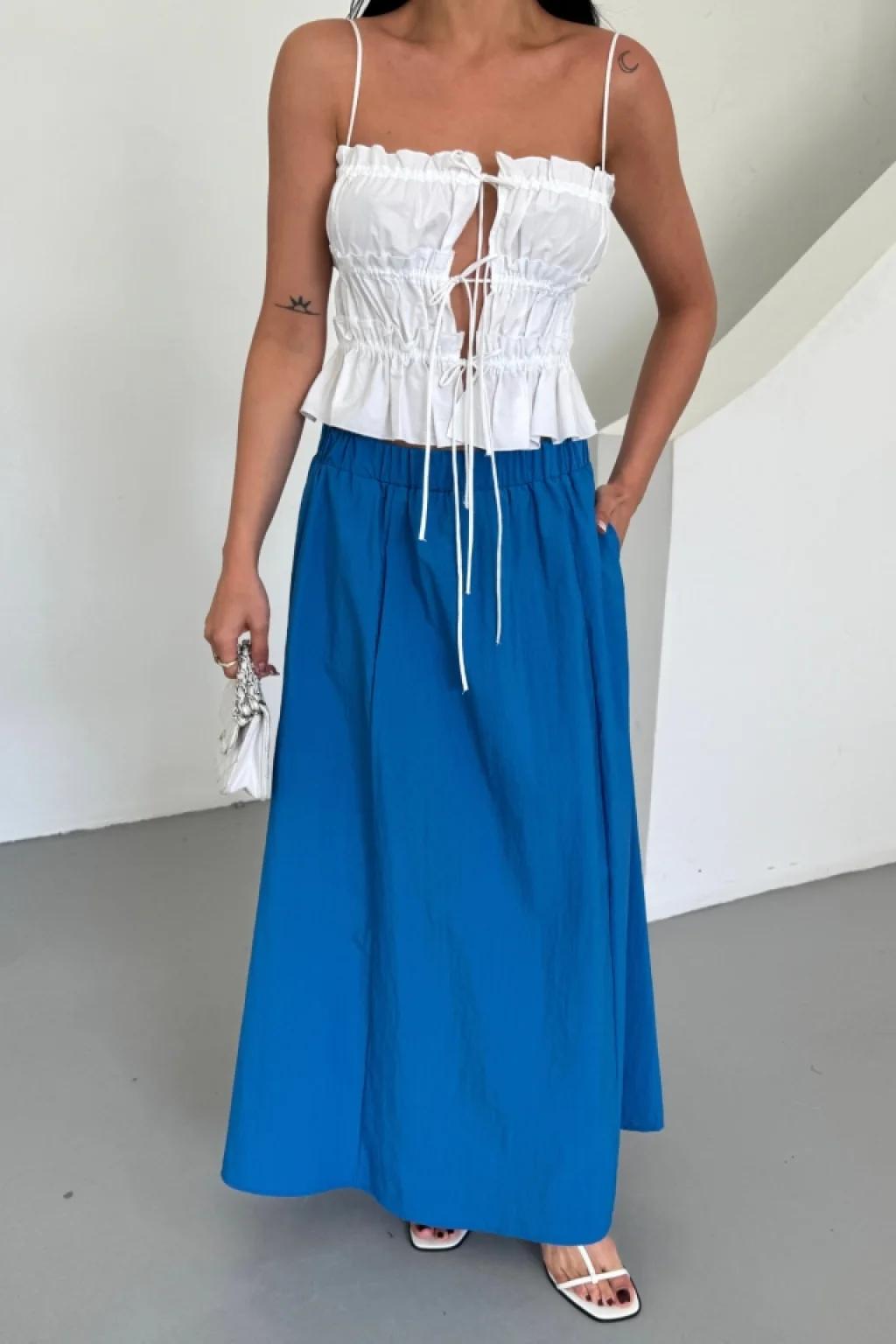 <p>ETEK ŞANEL BOY SOFT KUMAŞ - Saks</p><br> <p>Modelin Ölçüleri: Boy:165, Kg:55, Göğüs:90, Bel:72, Kalça: 100</p><br> <p>Modelin üzerindeki ürün M/38 bedendir</p><br> <ul> </ul>
