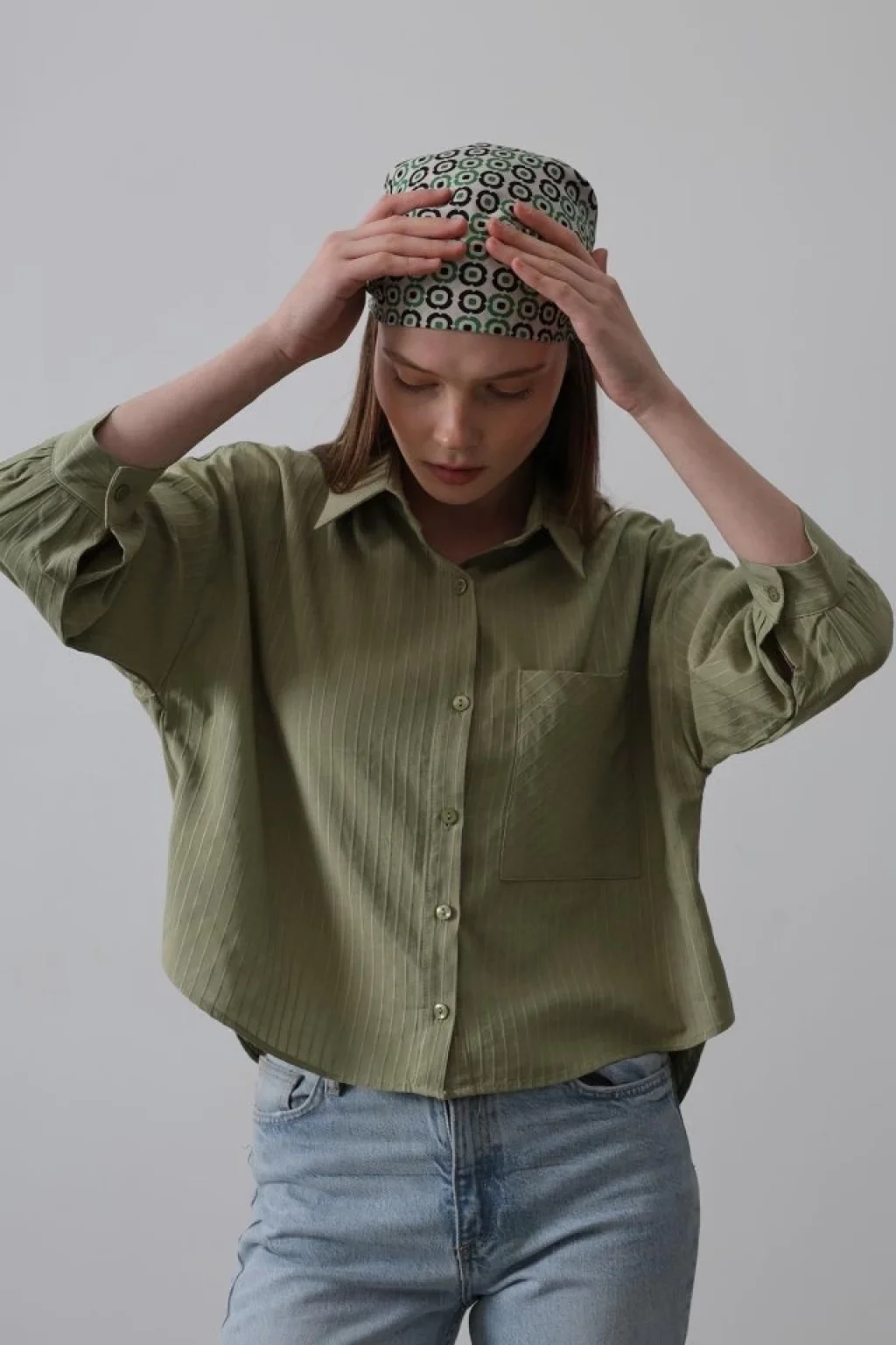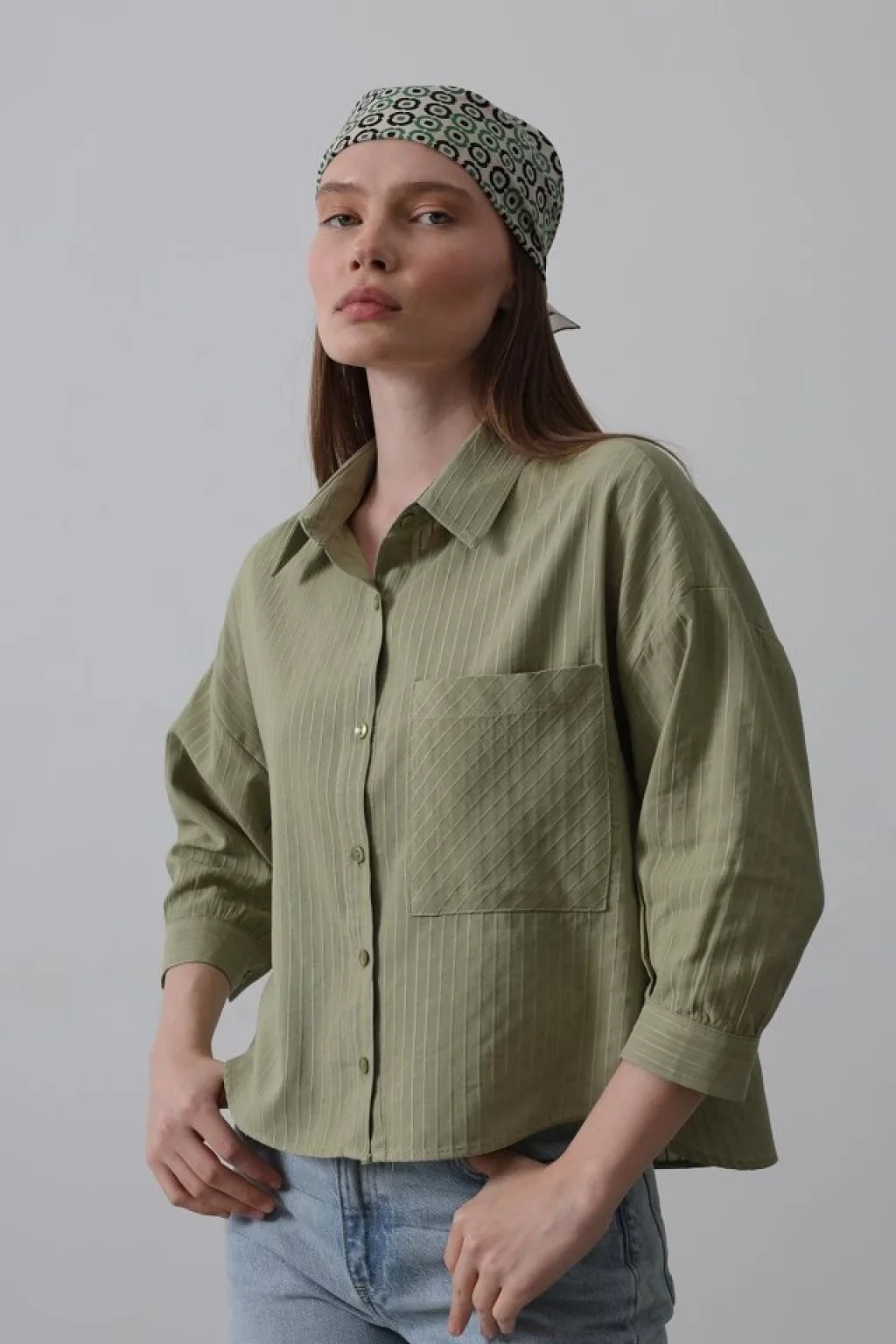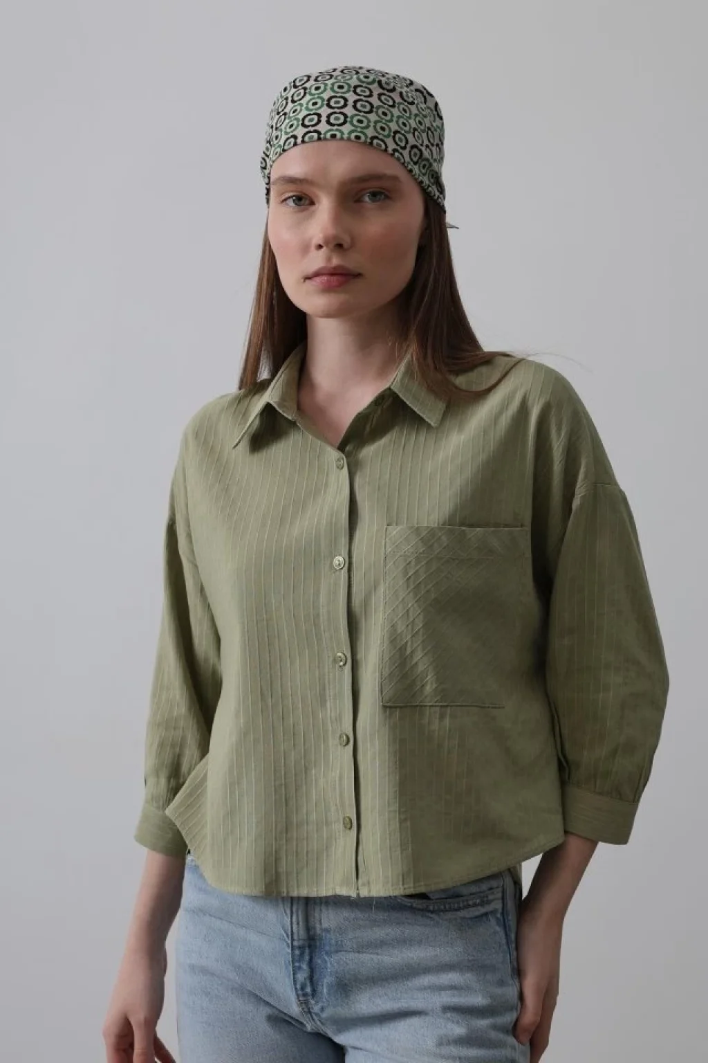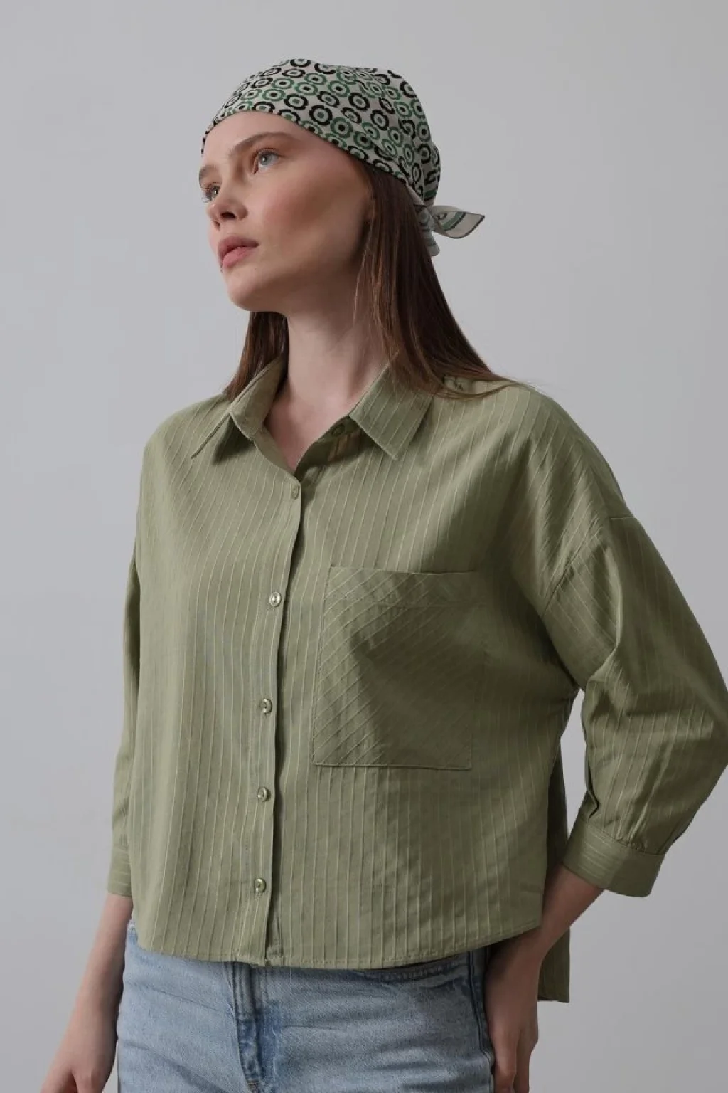 Cepli Kısa Kesim Gömlek - Haki