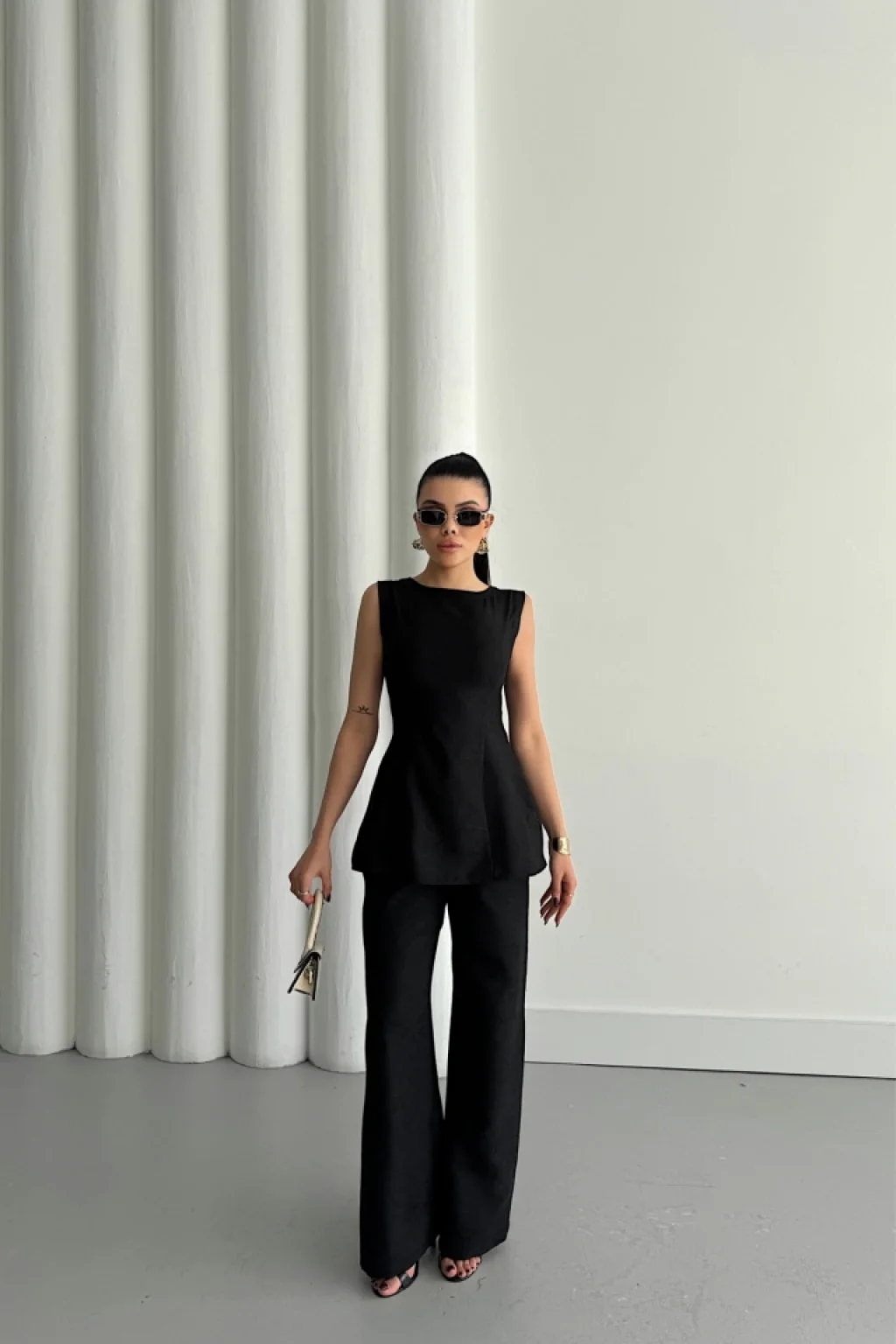 JAKAR KETEN KOLSUZ BLUZ-PANTOLON TK - Siyah
