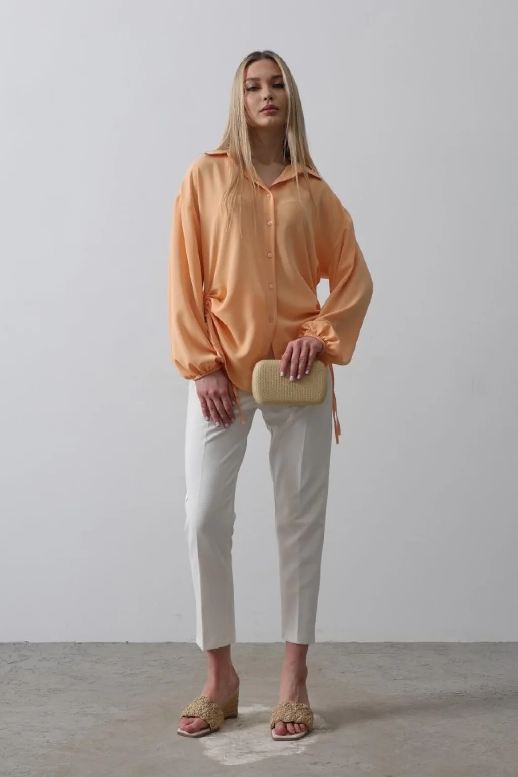 Kadın Dokuma Viskon Kumaş V Yaka Dekolte Ve Metal Düğme Detaylı Gömlek