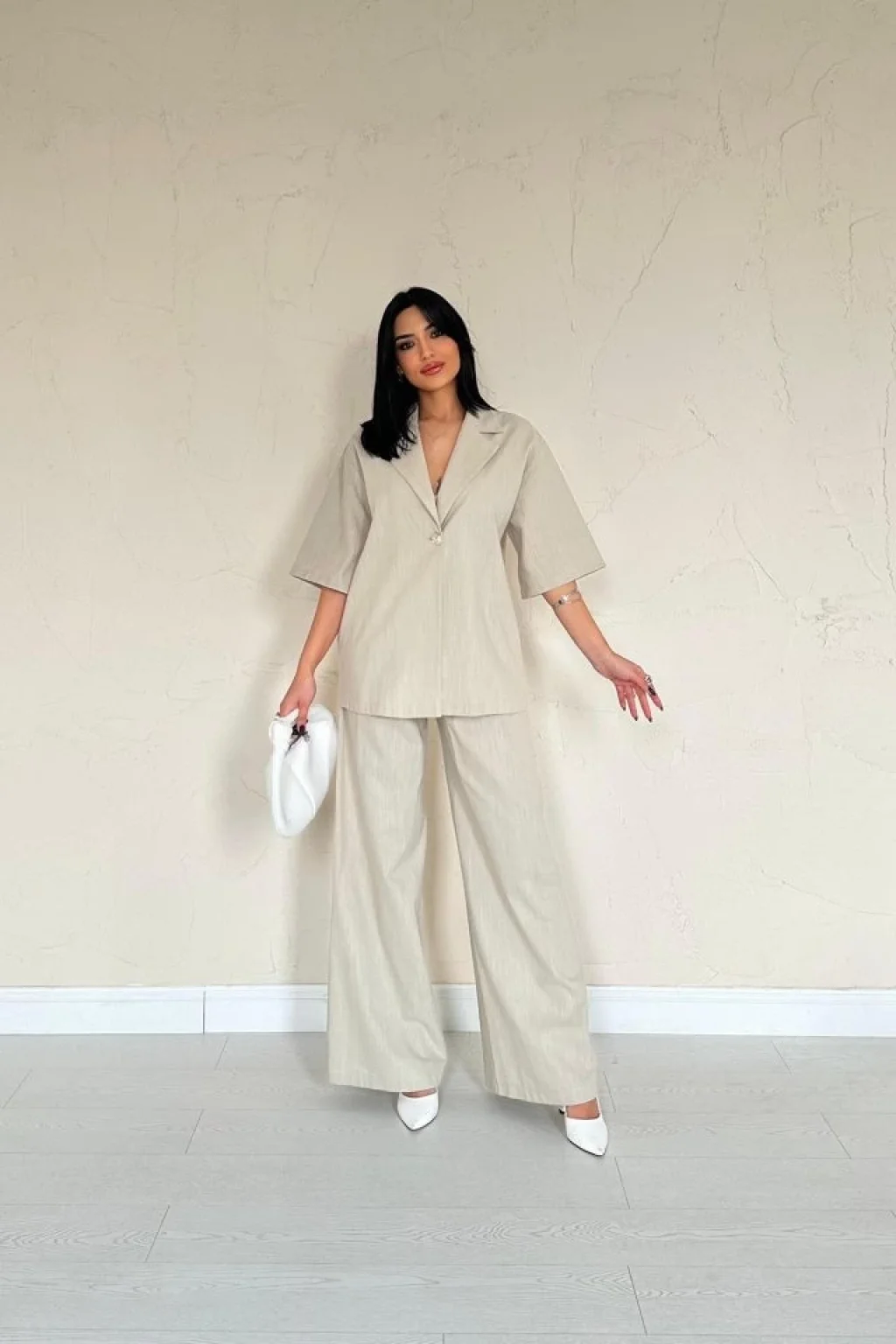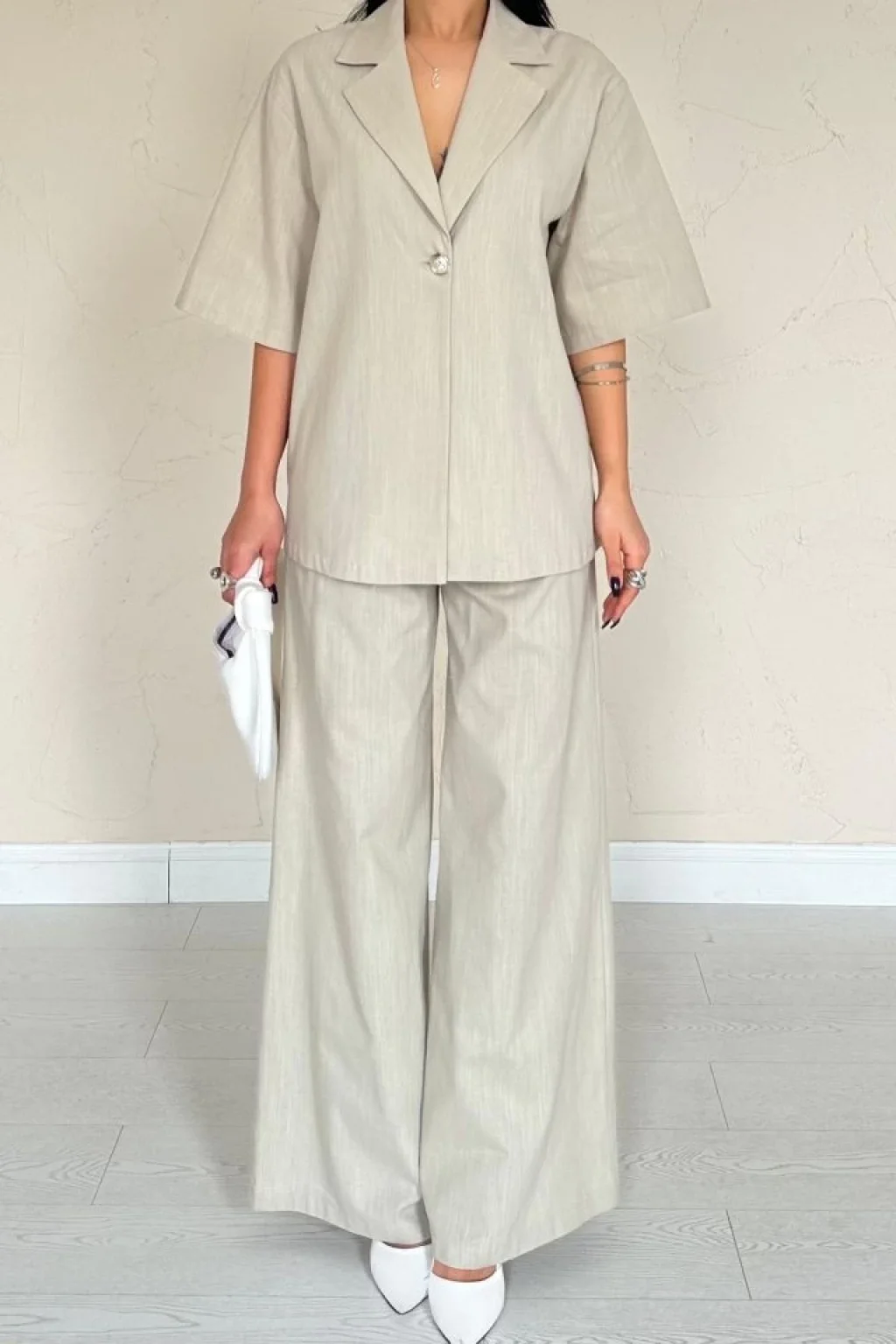 Bej Önü Tek Düğmeli Ceket Pantolon Takım
