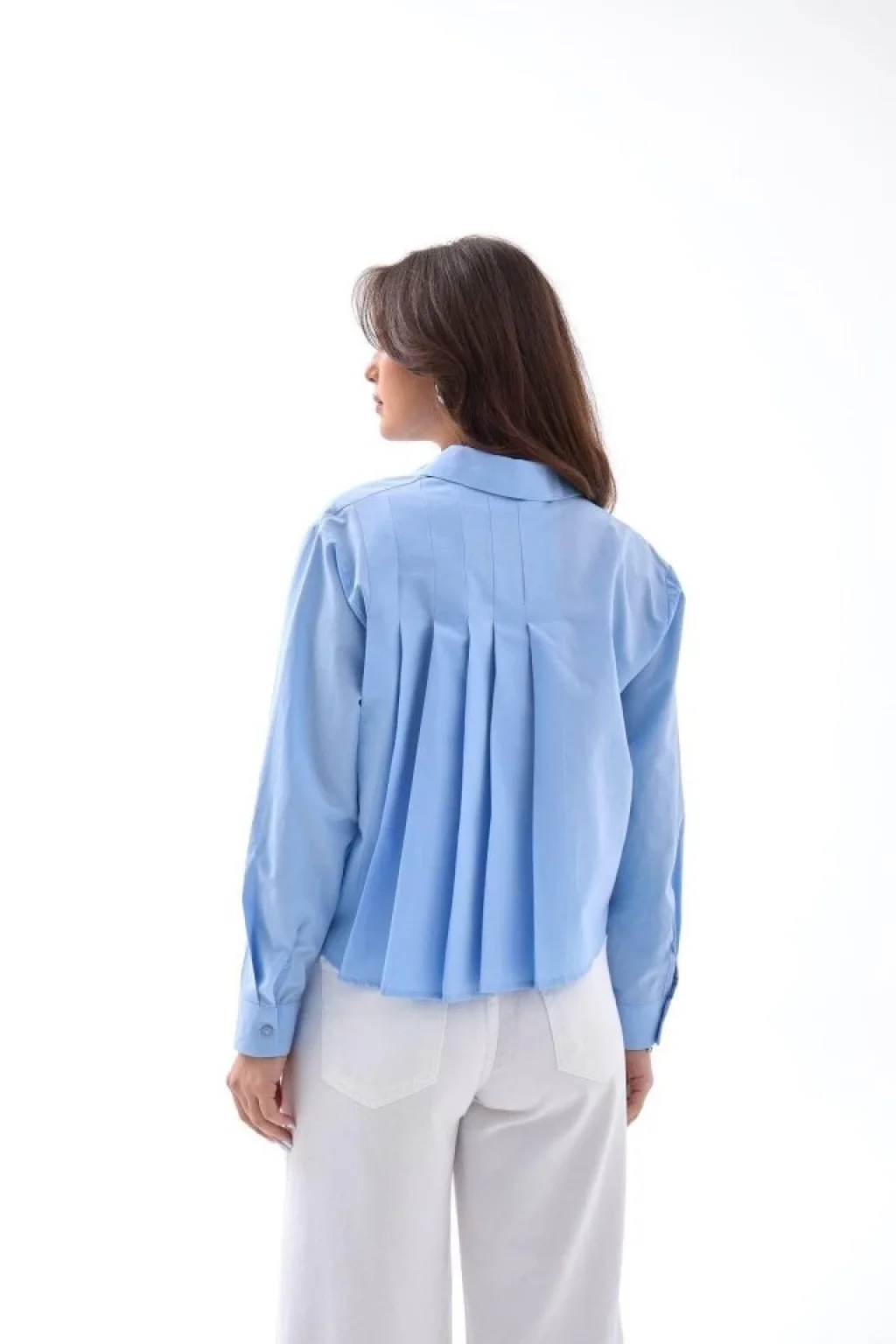 Kadın Uzun Kollu Bisiklet Yaka Pileli Ithal Krep Bluz