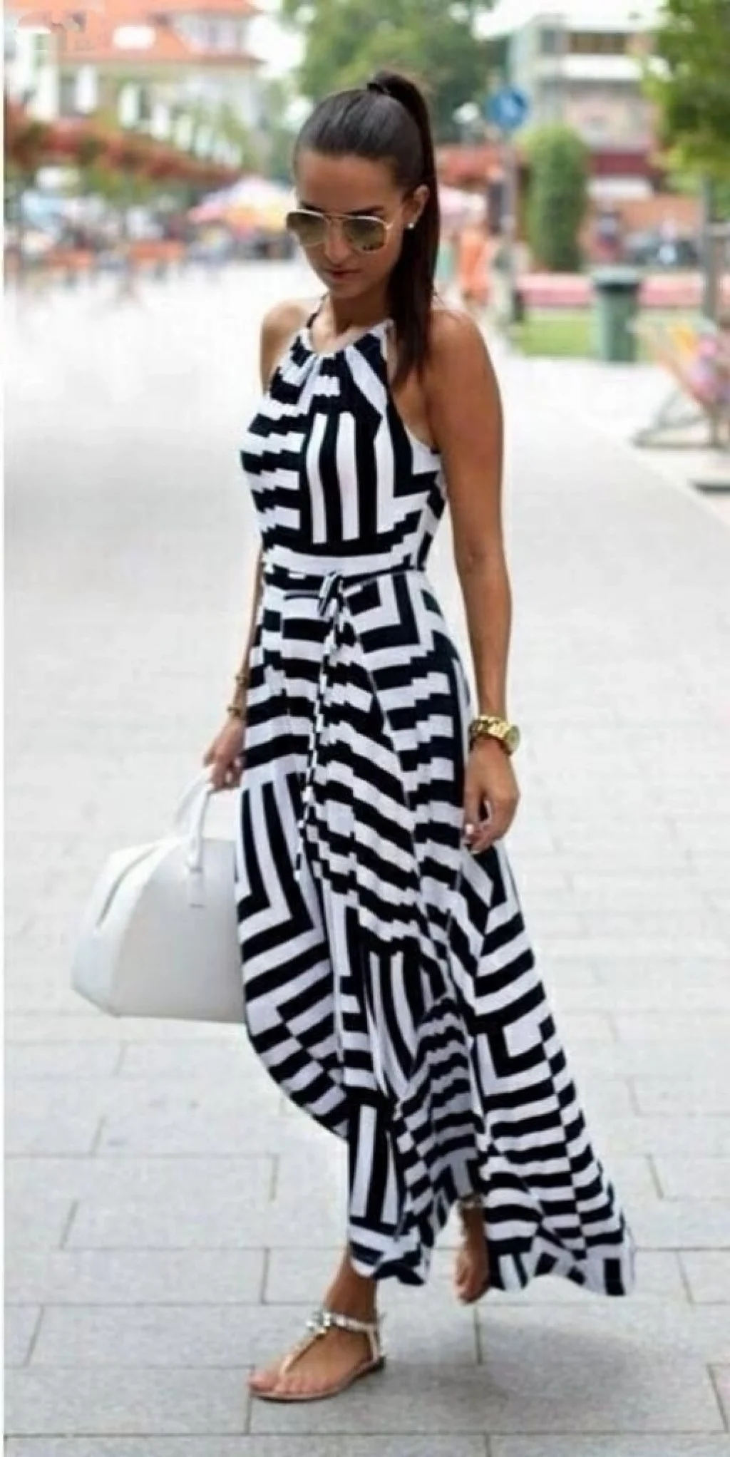 Kadın Ayarlanabilir Askılı Geometrik Desen Kuşaklı Gipeli Süprem Elbise