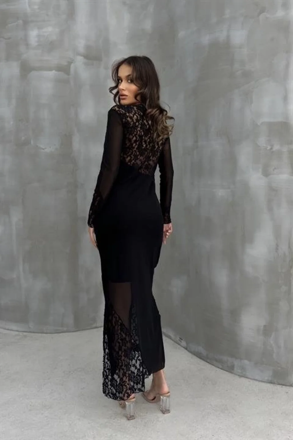 Almond Dantel Detaylı Tül Elbise 2659-8