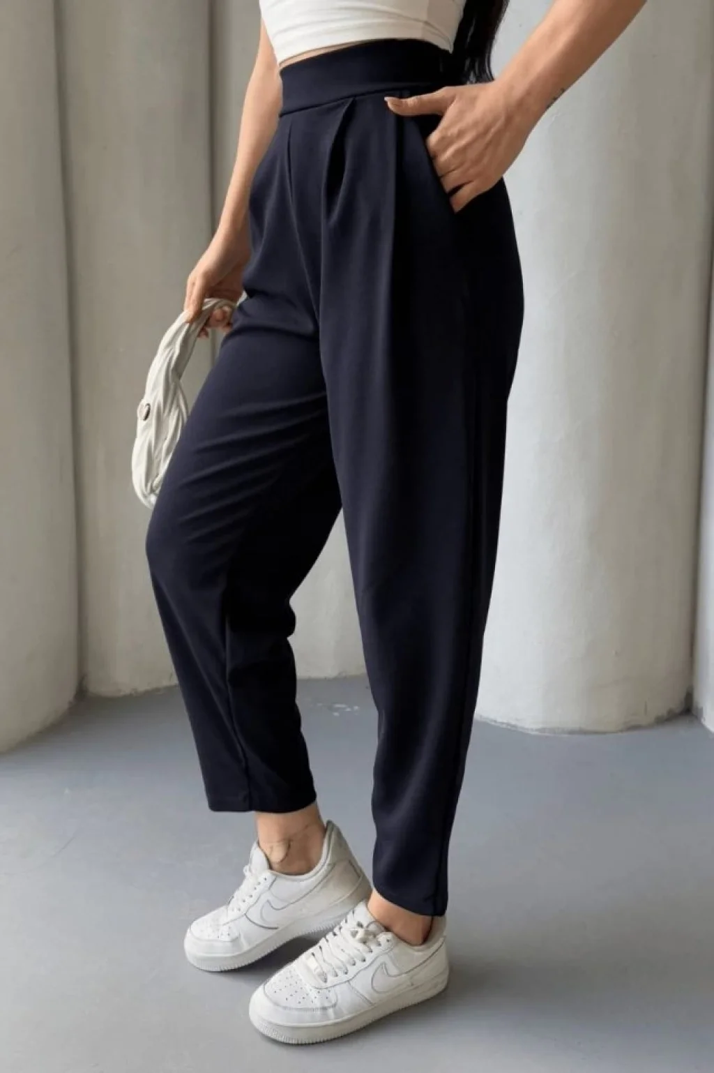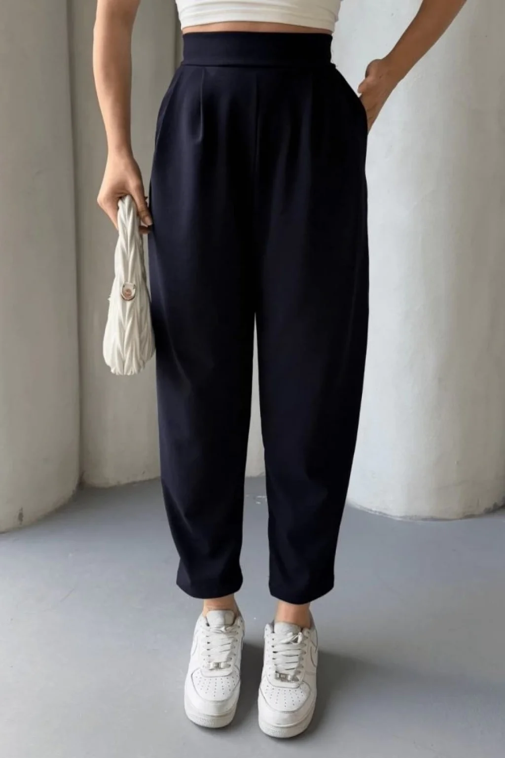 Kadın Scuba Krep Likralı Yan Fermuarlı Lastikli Harem Pantolon