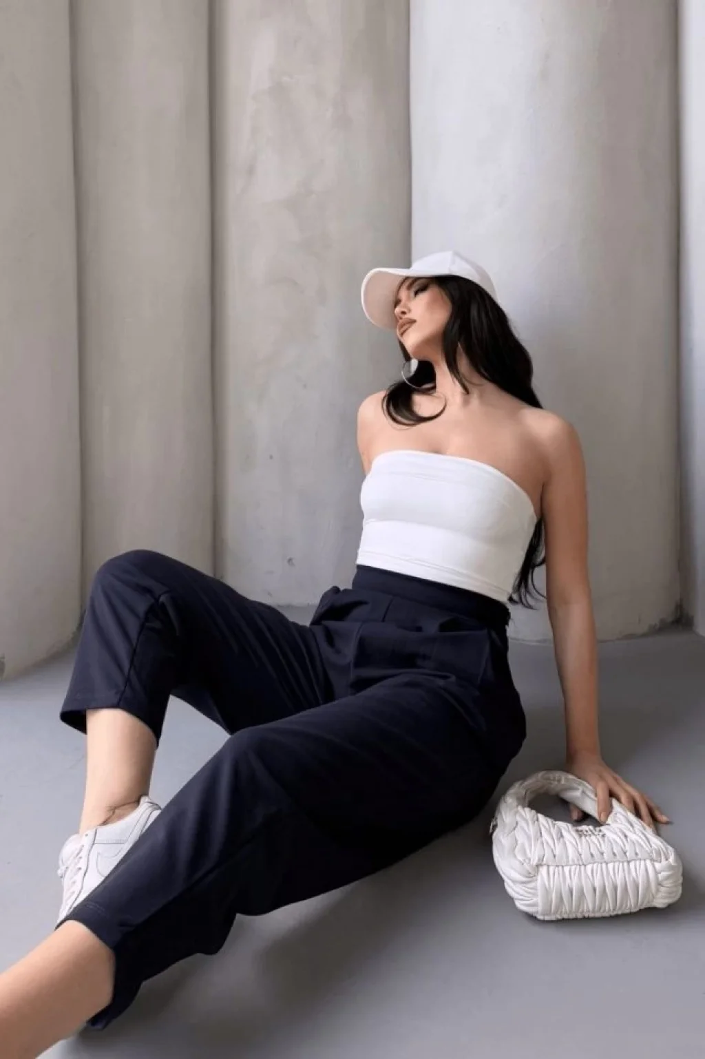 Kadın Yüksek Bel Cepli Ithal Krep Pantolon