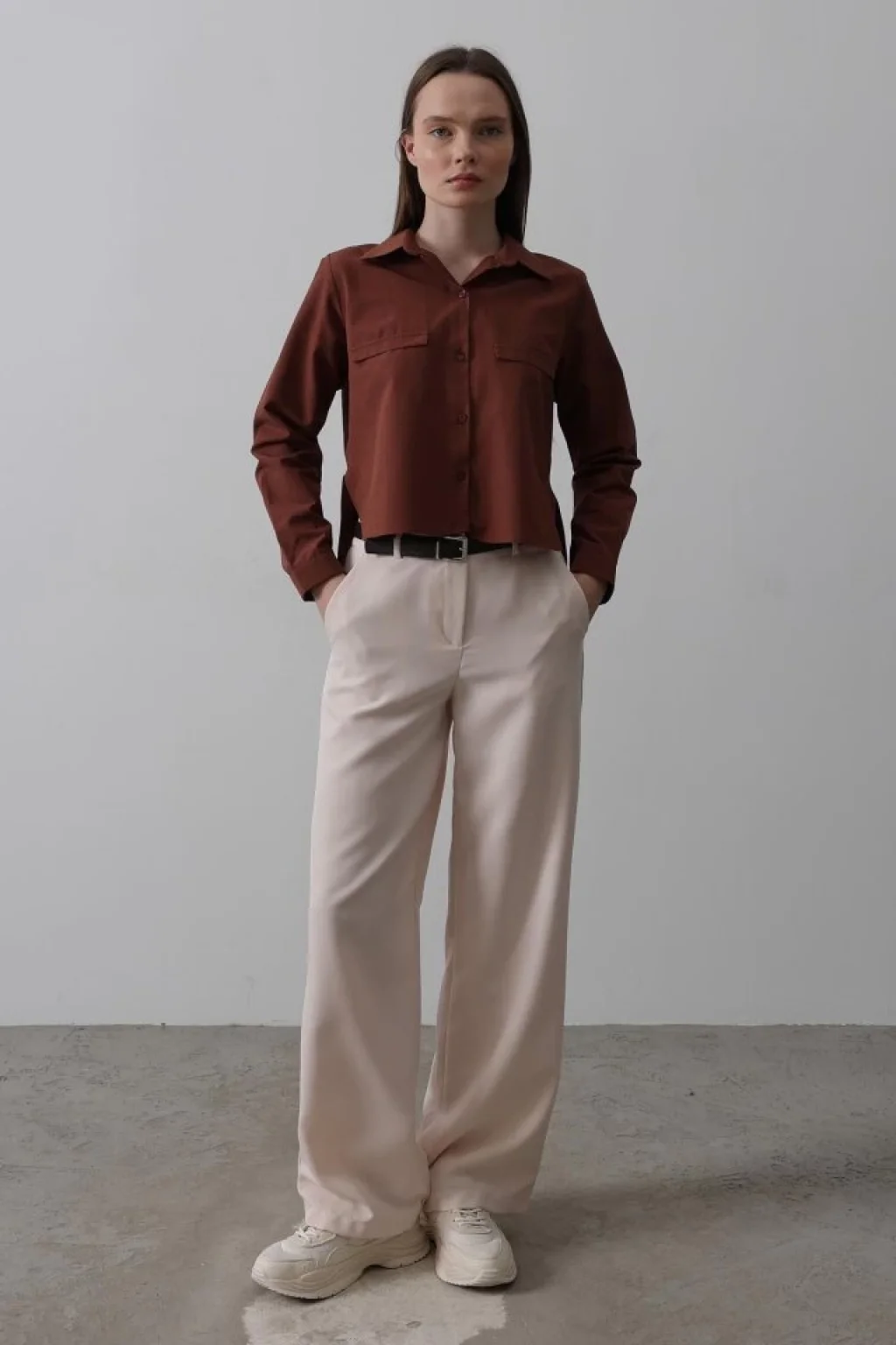 Kadın Uzun Kollu Kruvaze Yaka Sandy Bluz