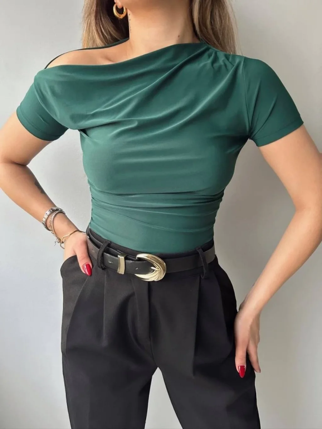 Kadın Sandy Kumaş Düşük Omuz Bluz