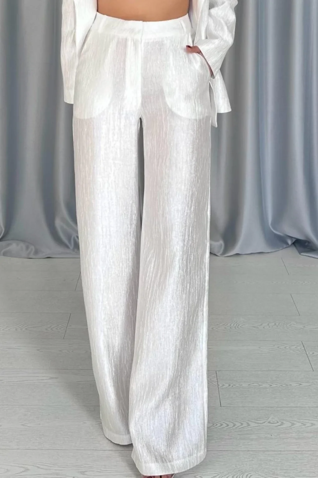 Ekru Beli Kuşaklı Ceket Ve Pantolon Parlak Takım