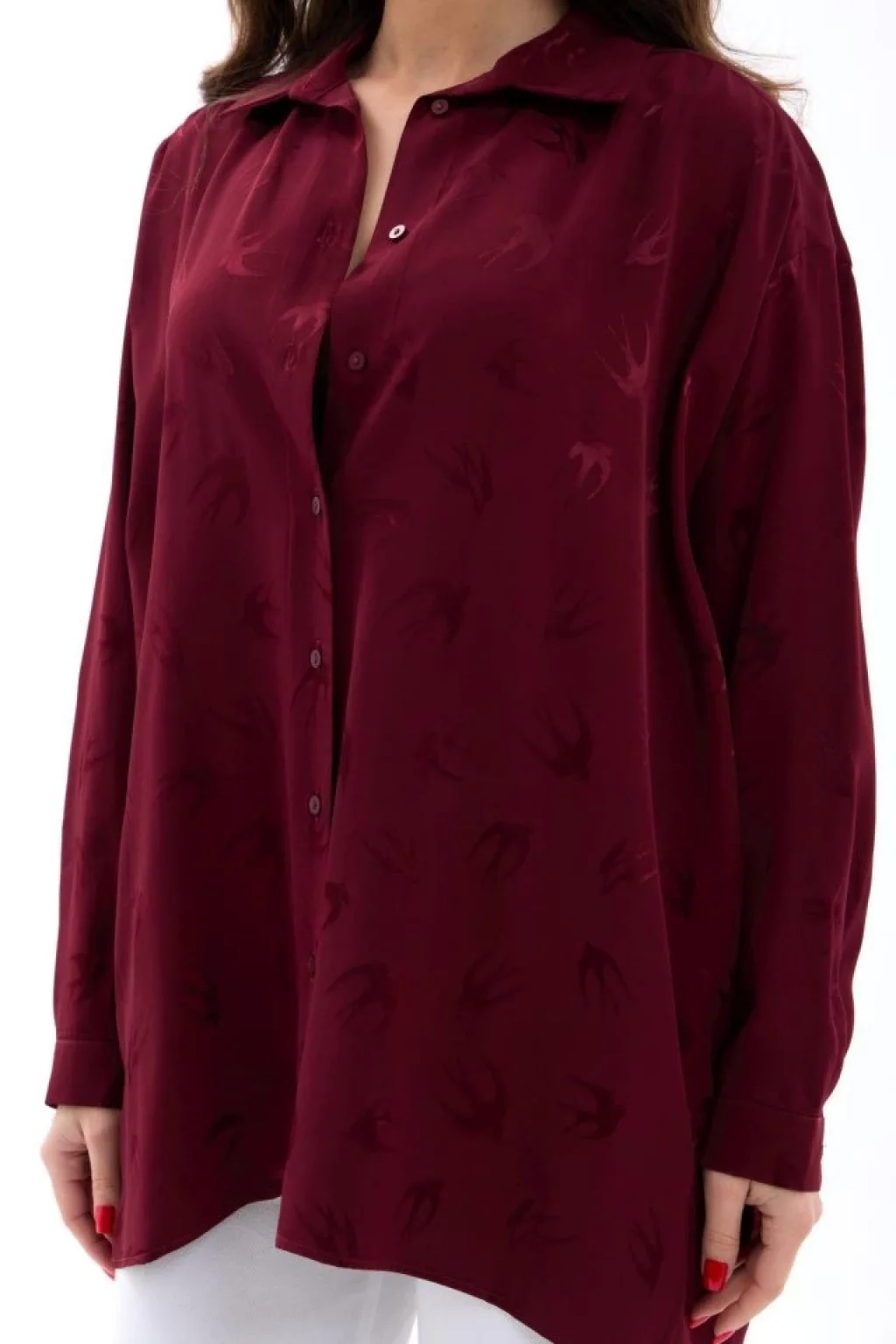 Kadın Uzun Kollu Hakim Yaka Yakadan Fermuarlı Geometrik Desenli Süprem Bluz