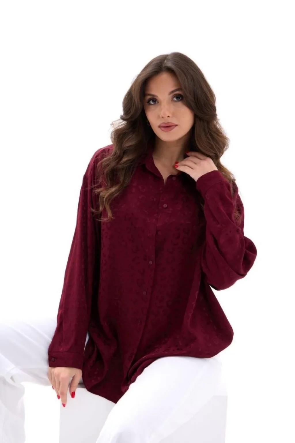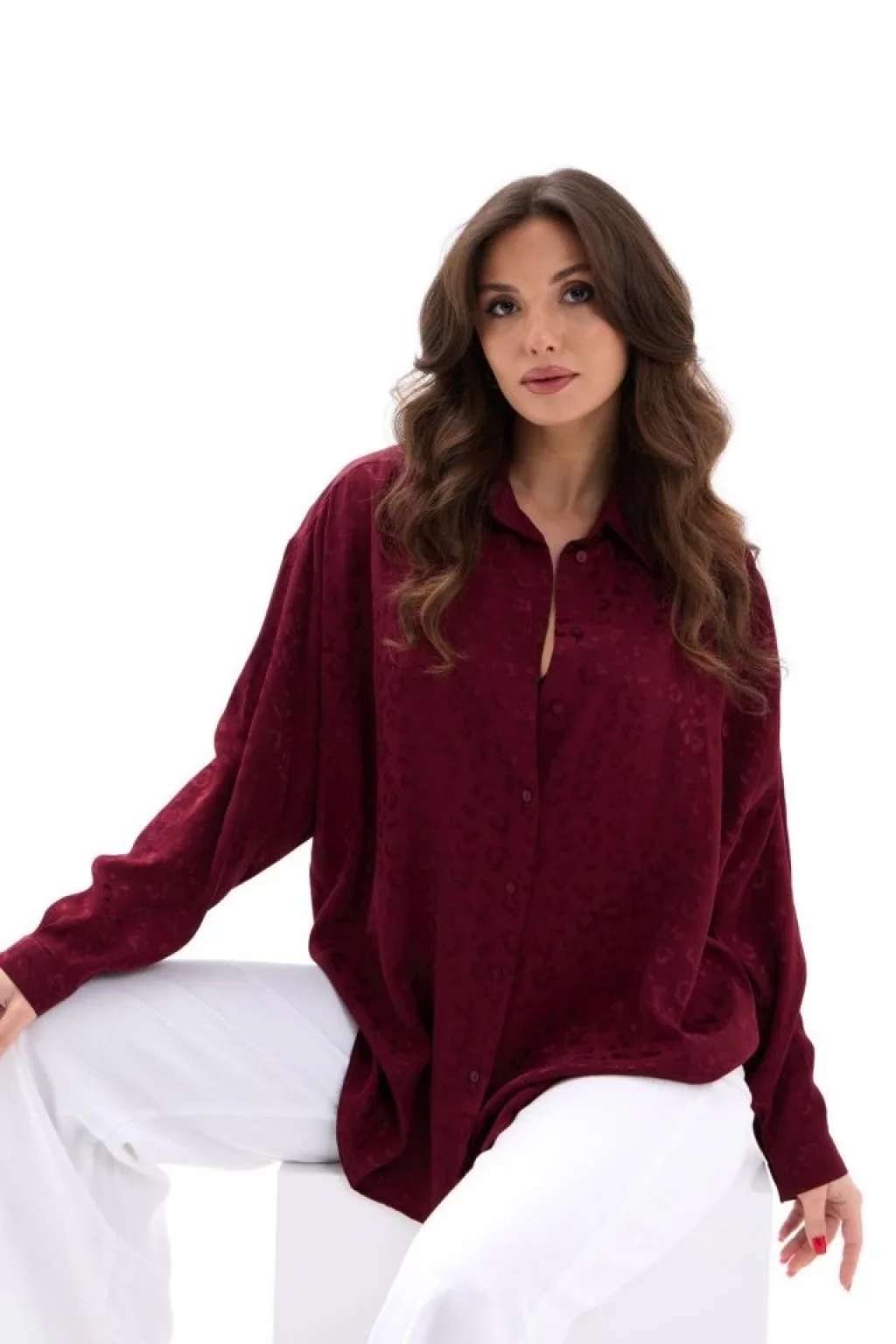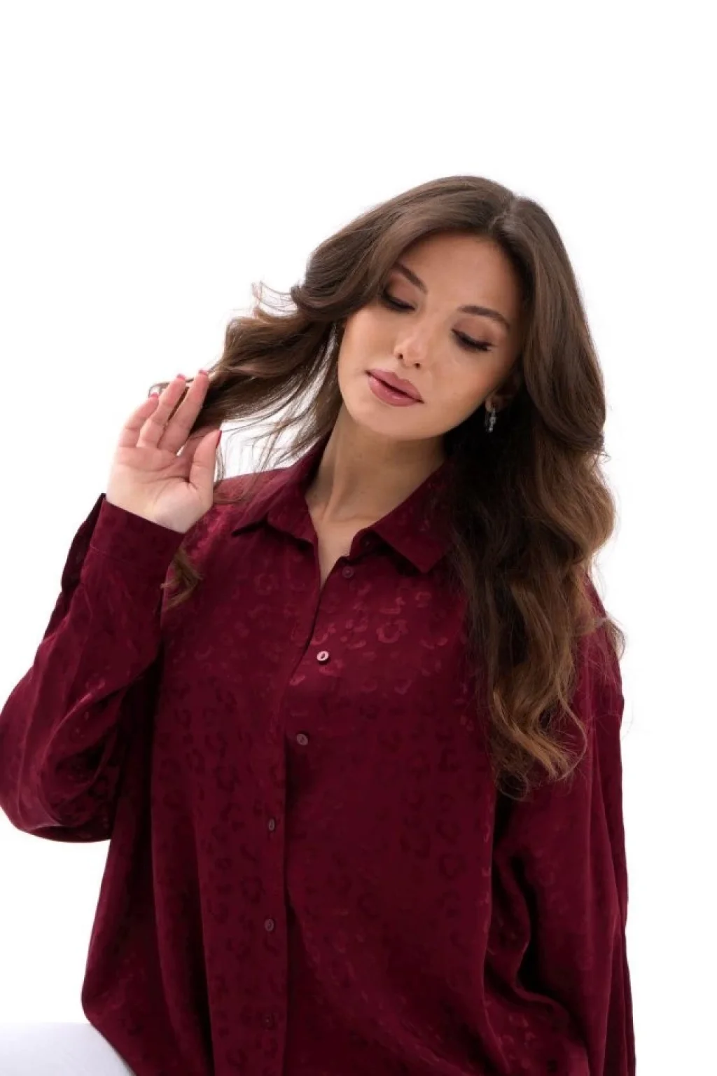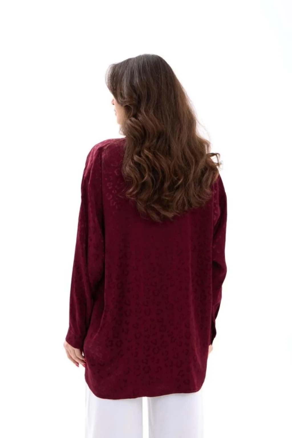 Kadın Uzun Kol Cep Detay Leopar Baskılı Mosskrep Kumaş Gömlek