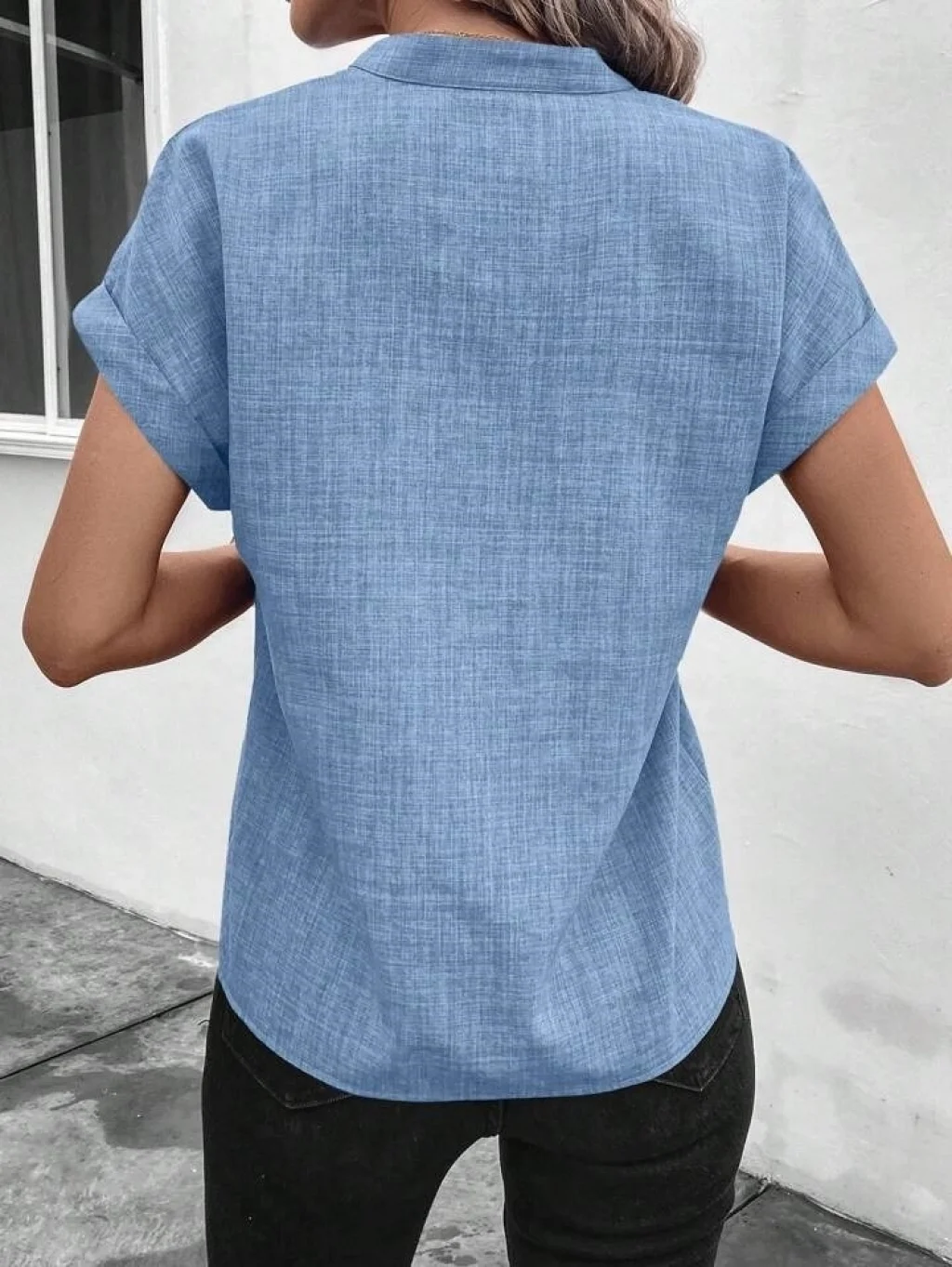 <p>Kadın Kısa Kollu Hakim Yaka Sofya Bluz</p><br> <p>Modelin Ölçüleri: Boy:165, Kg:55, Göğüs:90, Bel:72, Kalça: 100</p><br> <p>Modelin üzerindeki ürün M/38 bedendir</p><br> <ul> <li>DESEN-Diğerleri</li><li>KALIP-Klasik</li> </ul>