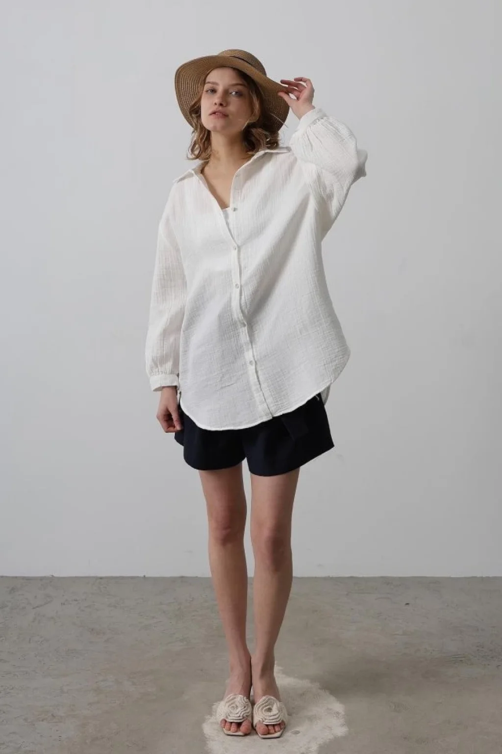 <p>Gömlek - Beyaz</p><br> <p>Modelin Ölçüleri: Boy:165, Kg:55, Göğüs:90, Bel:72, Kalça: 100</p><br> <p>Modelin üzerindeki ürün M/38 bedendir</p><br> <ul> </ul>