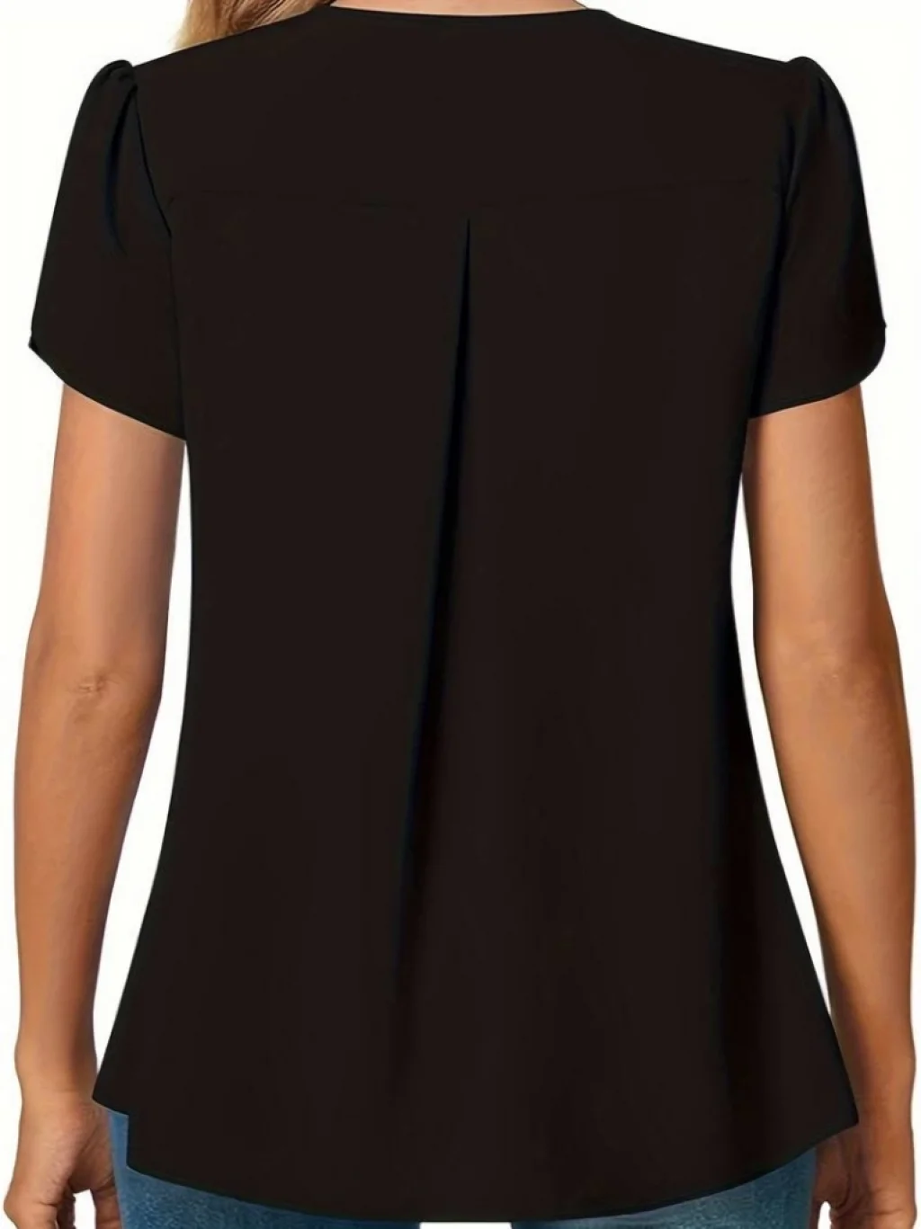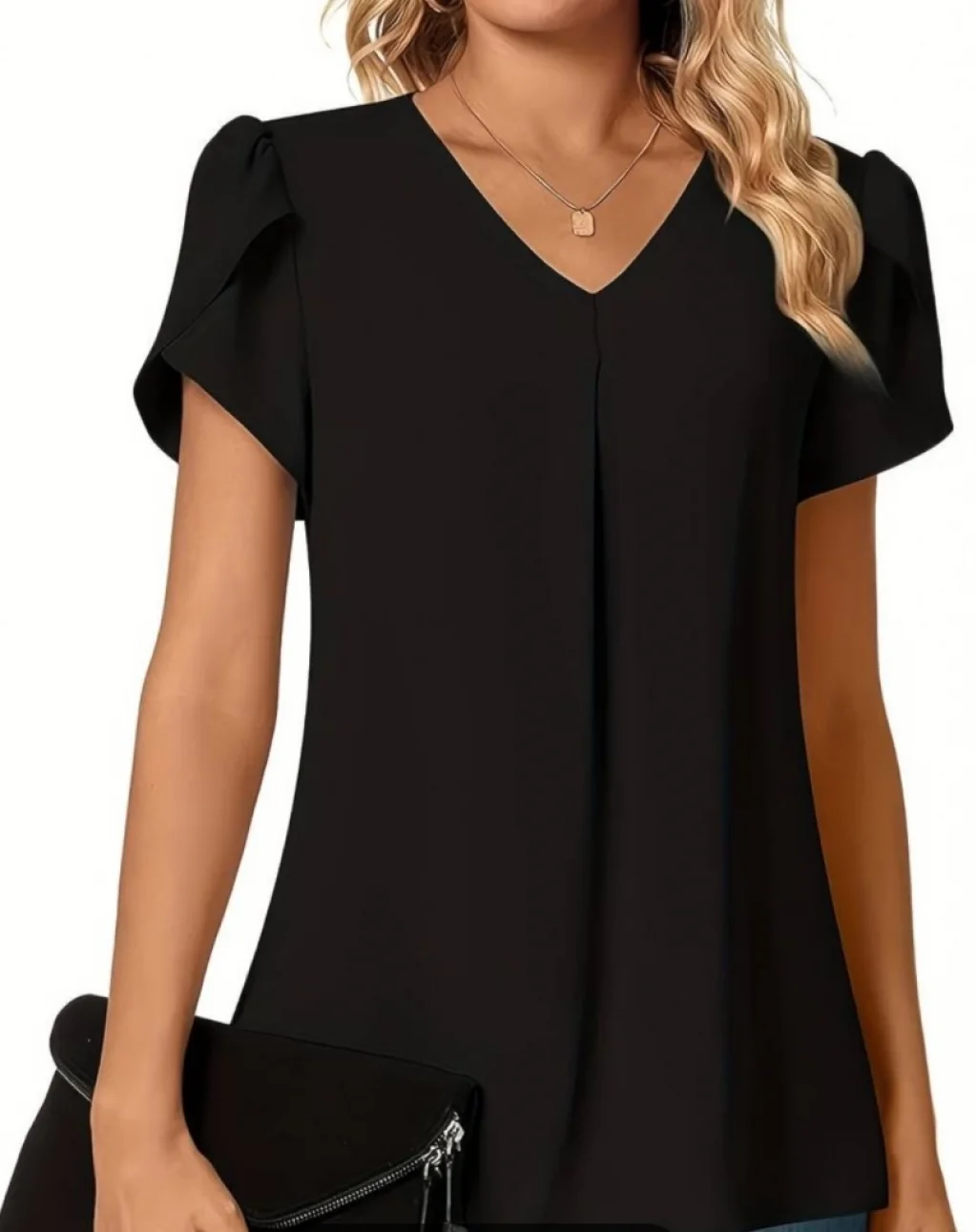 <p>Kısa Kollu V Yaka Sandy Bluz</p><br> <p>Modelin Ölçüleri: Boy:165, Kg:55, Göğüs:90, Bel:72, Kalça: 100</p><br> <p>Modelin üzerindeki ürün M/38 bedendir</p><br> <ul> <li>DESEN-Diğerleri</li><li>KALIP-Düz/Desensiz</li> </ul>