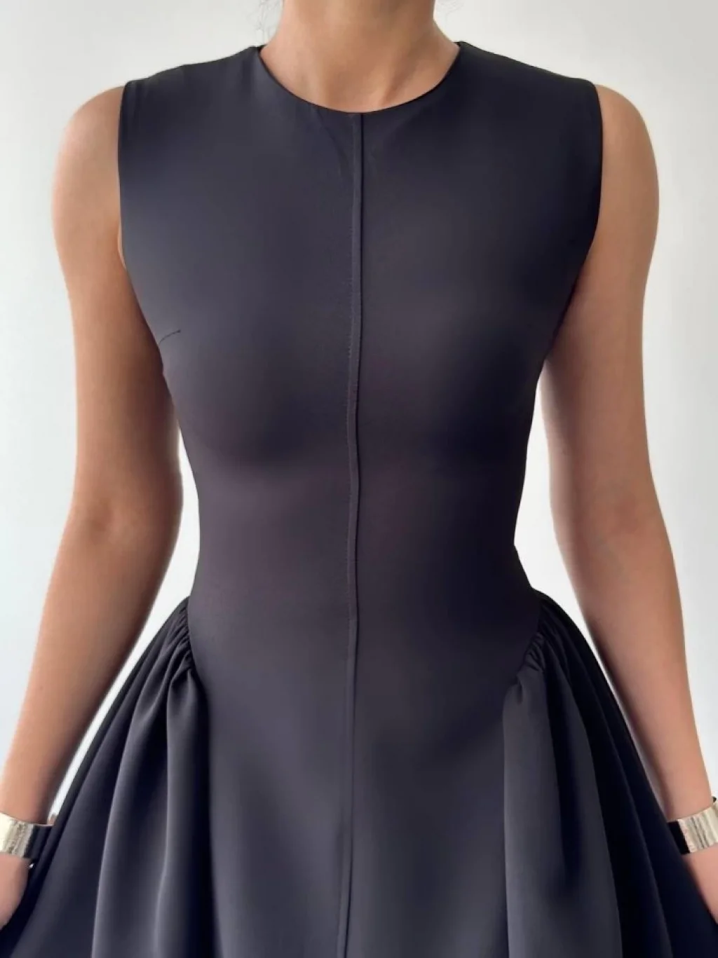 Kadın Kısa Kollu Ribana Ve Fermuar Detay Midi Boy Elbise