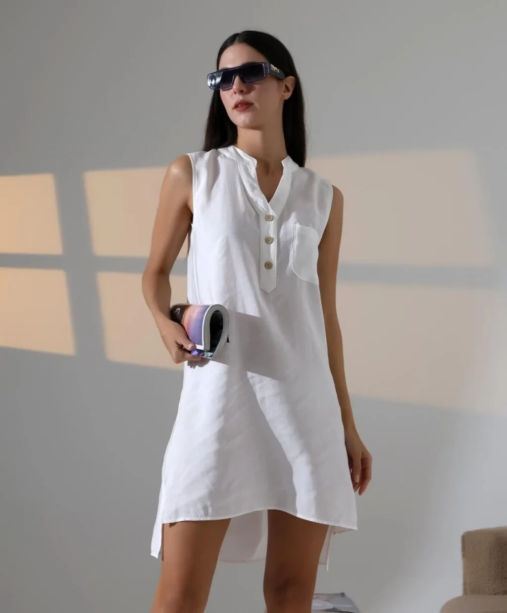 Düğme Detaylı Mini Elbise