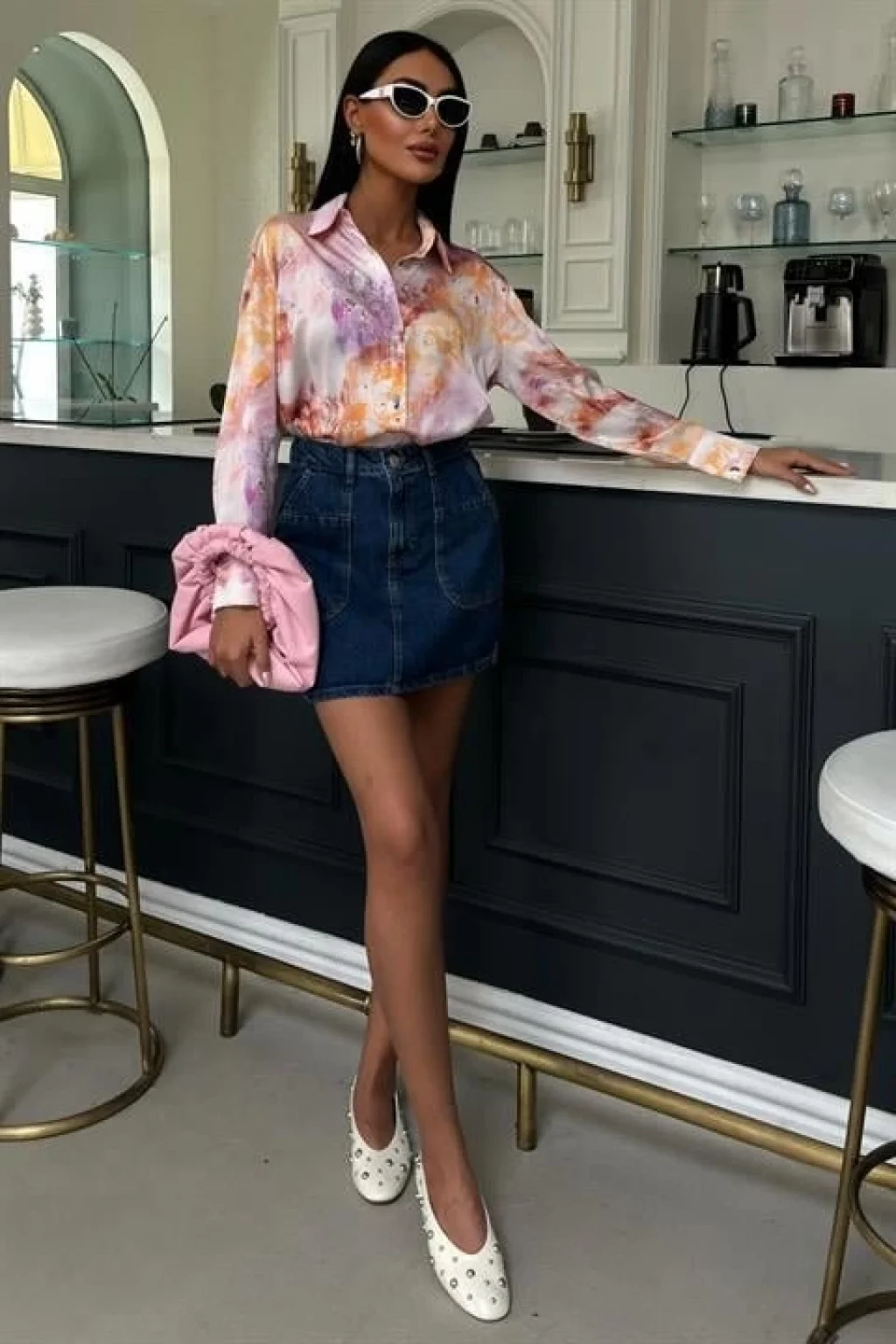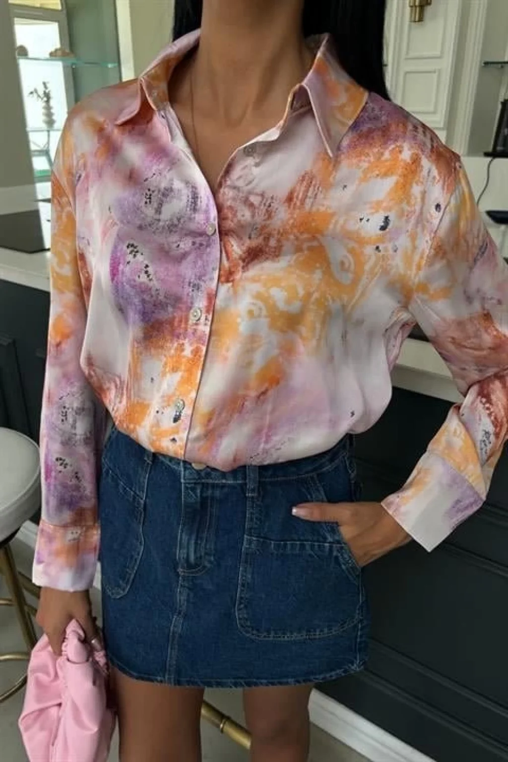 <p>Batik Desenli Saten Gömlek 3409</p><br> <p>Modelin Ölçüleri: Boy:165, Kg:55, Göğüs:90, Bel:72, Kalça: 100</p><br> <p>Modelin üzerindeki ürün M/38 bedendir</p><br> <ul> </ul>