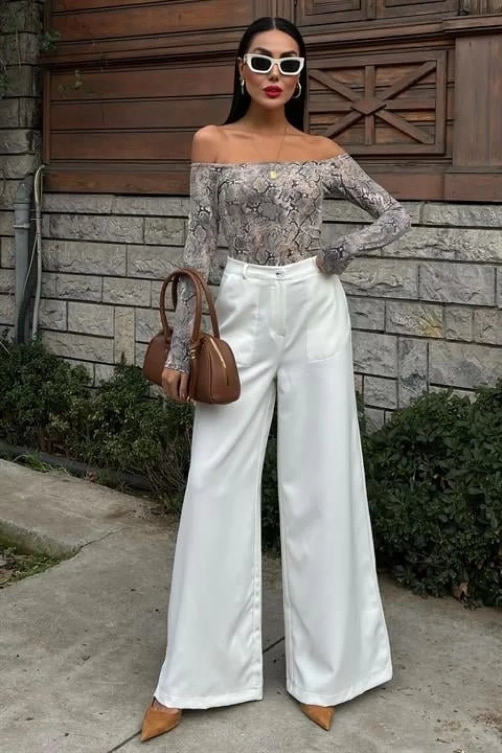 <p>Bol Paça Palazzo Pantolon 0080</p><br> <p>Modelin Ölçüleri: Boy:165, Kg:55, Göğüs:90, Bel:72, Kalça: 100</p><br> <p>Modelin üzerindeki ürün M/38 bedendir</p><br> <ul> </ul>