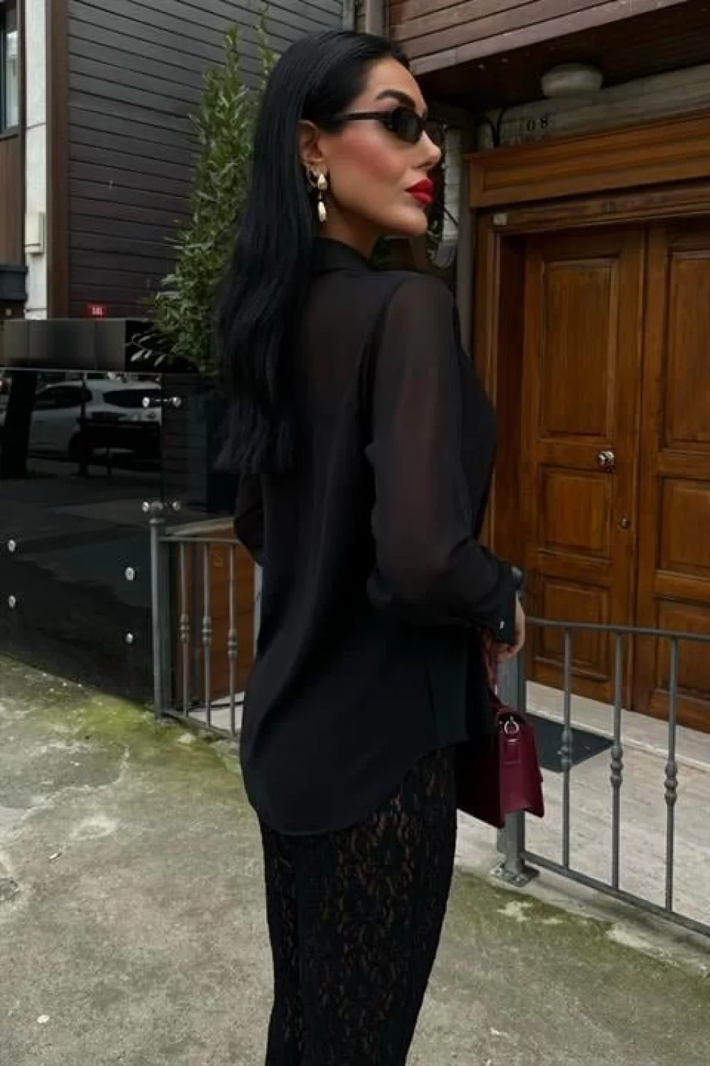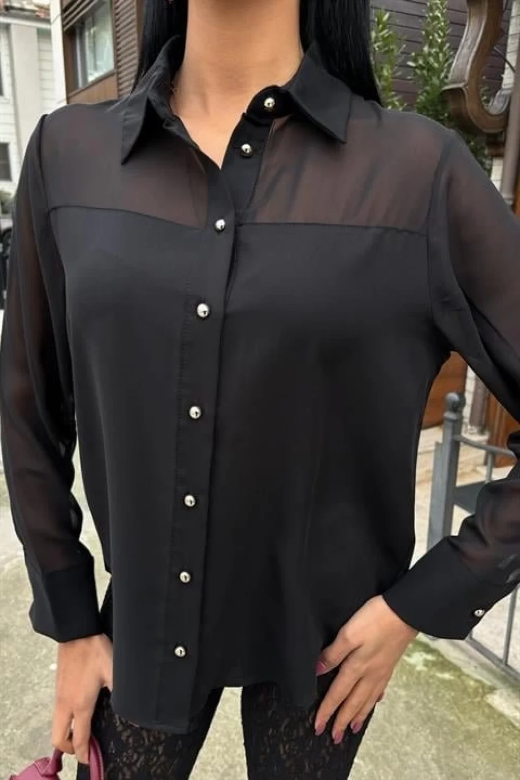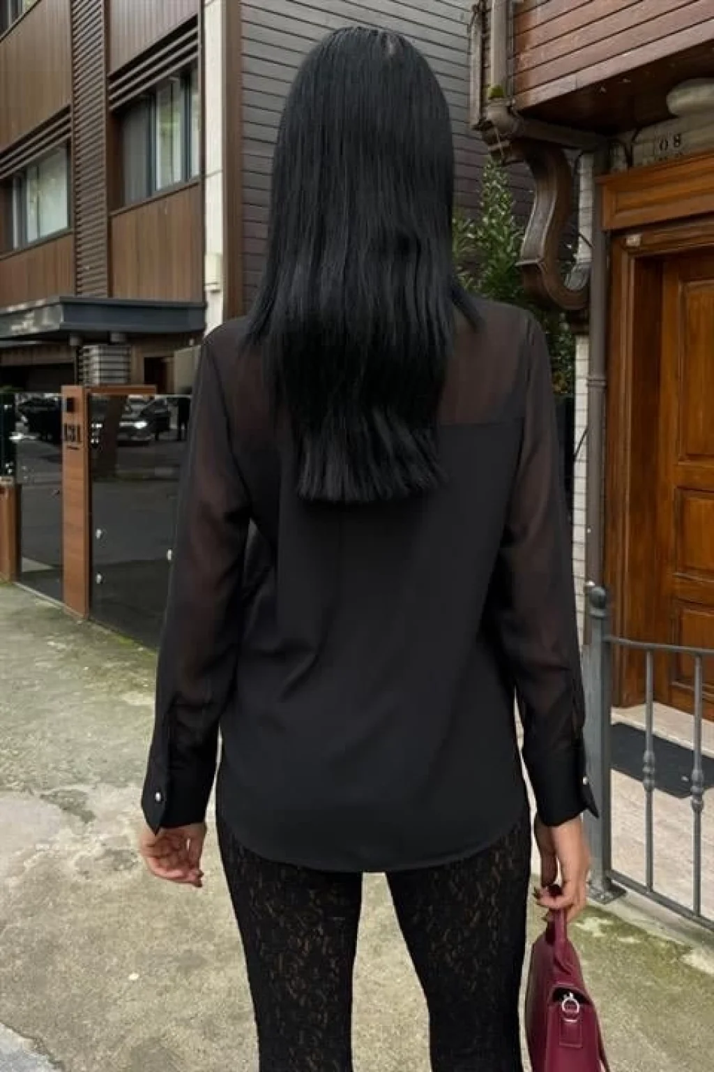 <p>Transparan Detaylı Dökümlü Gömlek 3427</p><br> <p>Modelin Ölçüleri: Boy:165, Kg:55, Göğüs:90, Bel:72, Kalça: 100</p><br> <p>Modelin üzerindeki ürün M/38 bedendir</p><br> <ul> </ul>