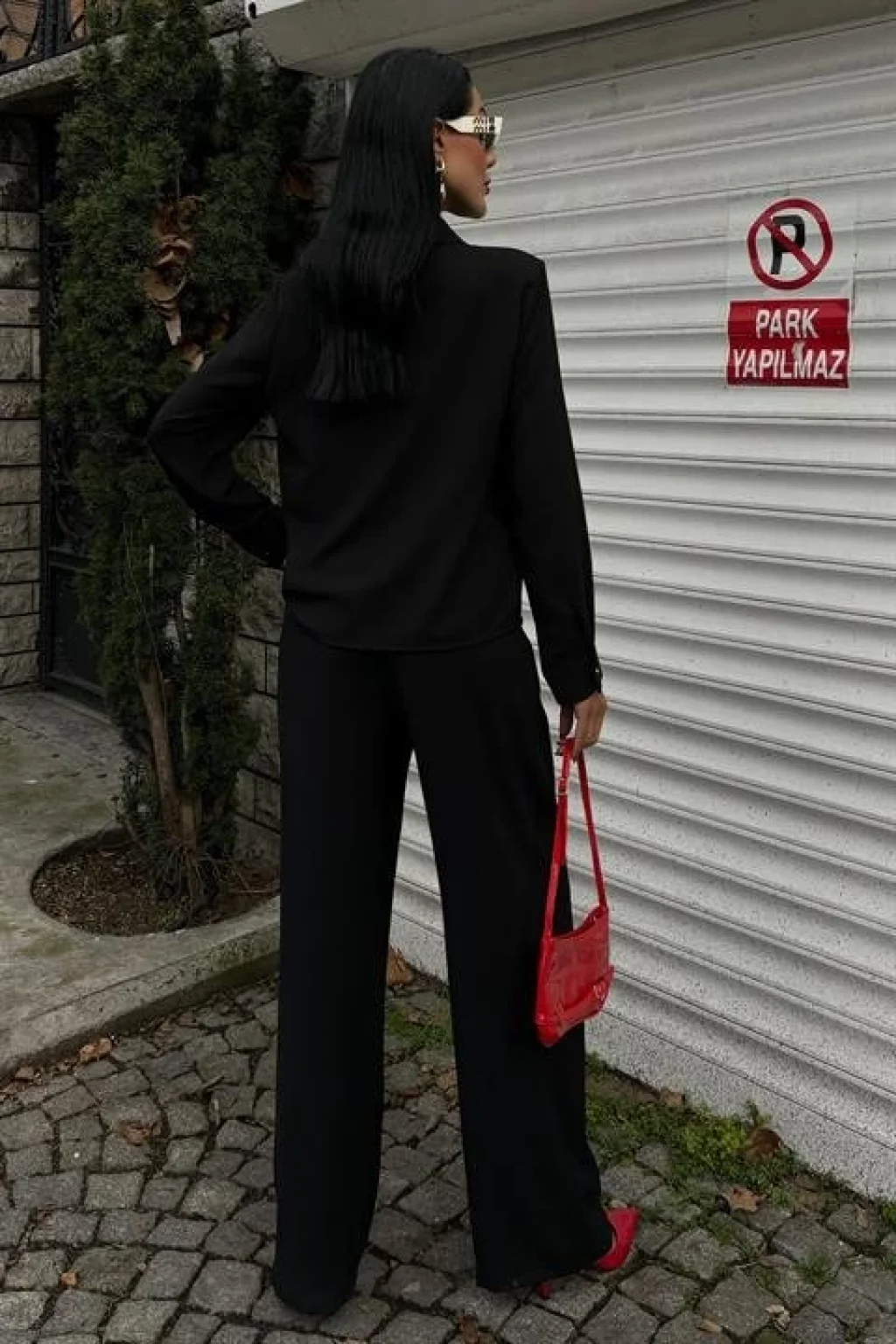 Kadın Dokuma Viskon Kumaş V Yaka Dekolte Ve Metal Düğme Detaylı Gömlek