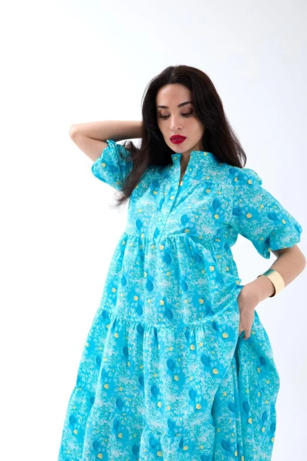 Desenli Kısa Kol Elbise 2558 - Mavi
