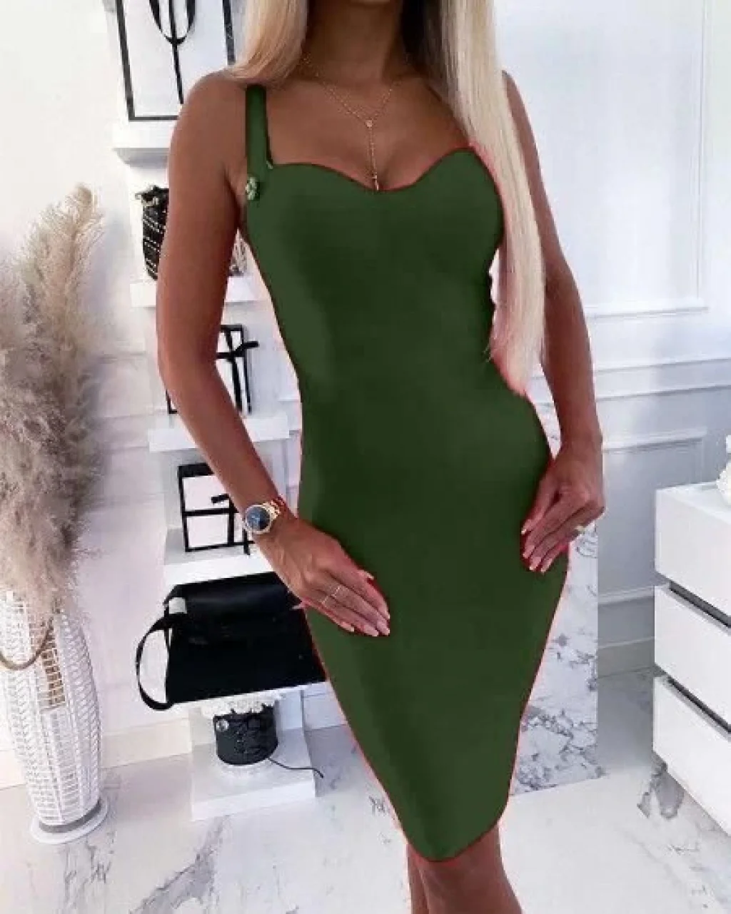 <p>Kadın Dalgıç Kumaş Düğmeli Fermuarlı Askılı Elbise</p><br> <p>Modelin Ölçüleri: Boy:165, Kg:55, Göğüs:90, Bel:72, Kalça: 100</p><br> <p>Modelin üzerindeki ürün M/38 bedendir</p><br> <ul> </ul>