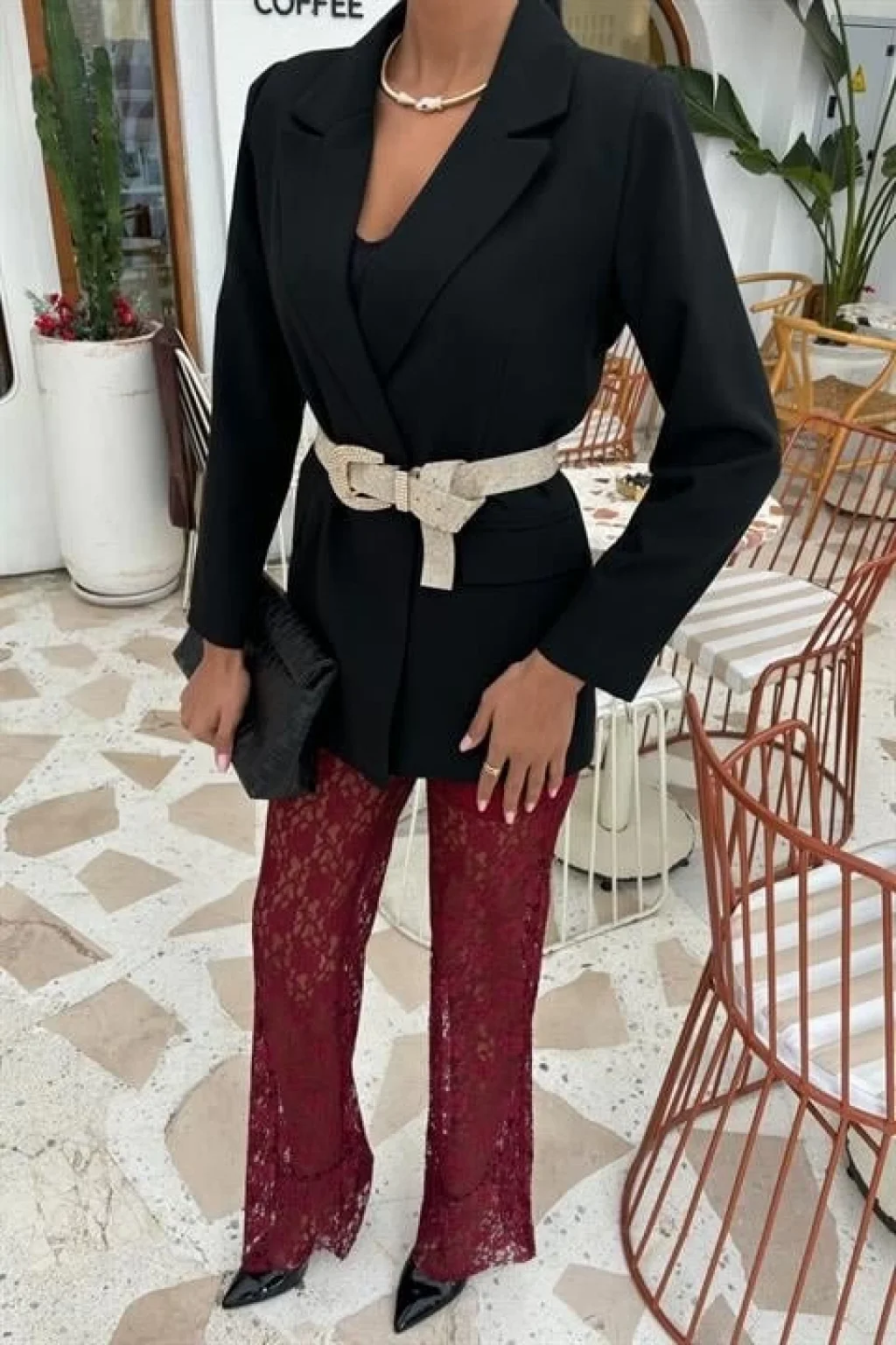 Kadın Beli Zincir Detay Ithal Krep Pantolon