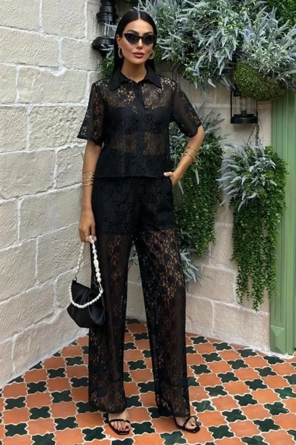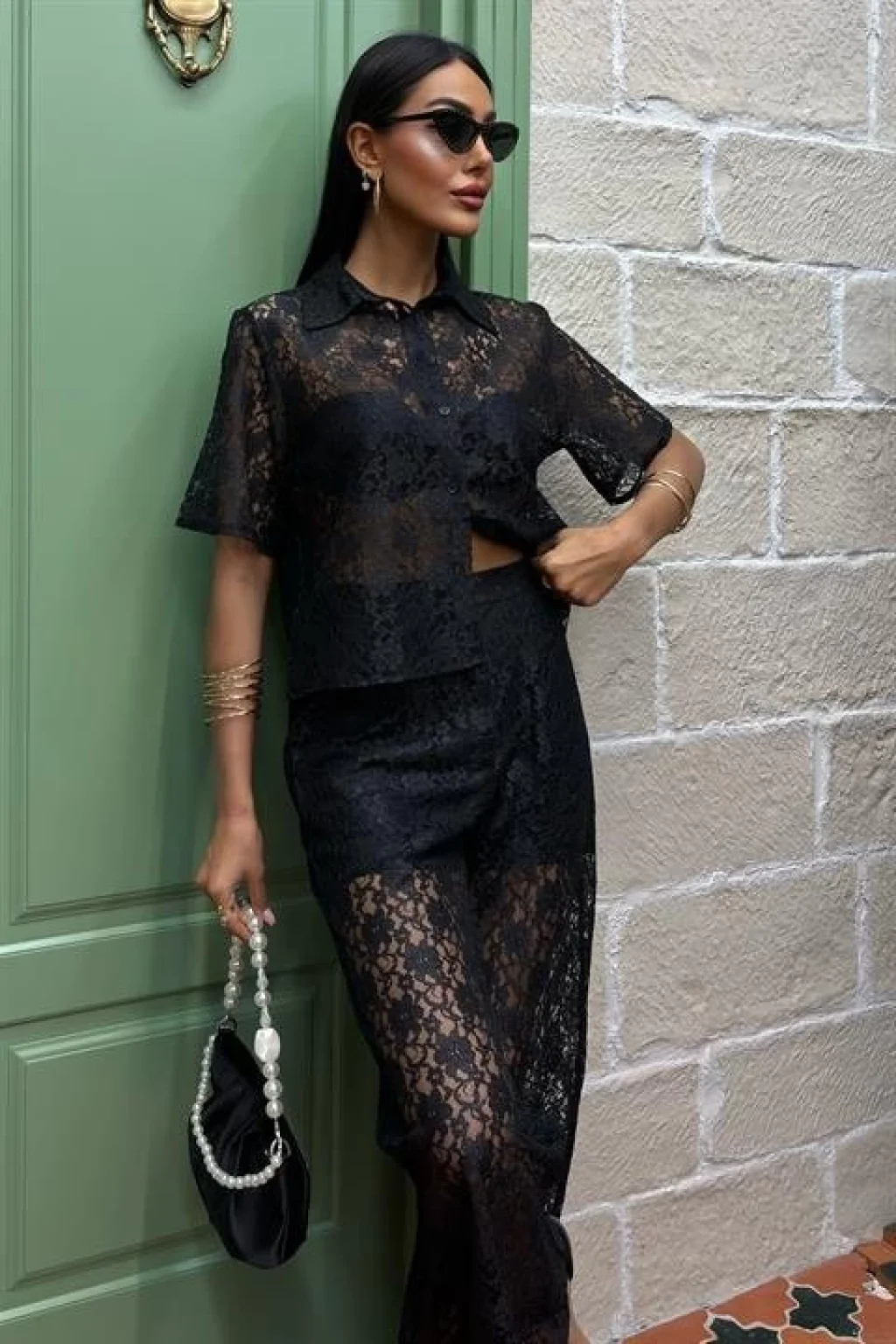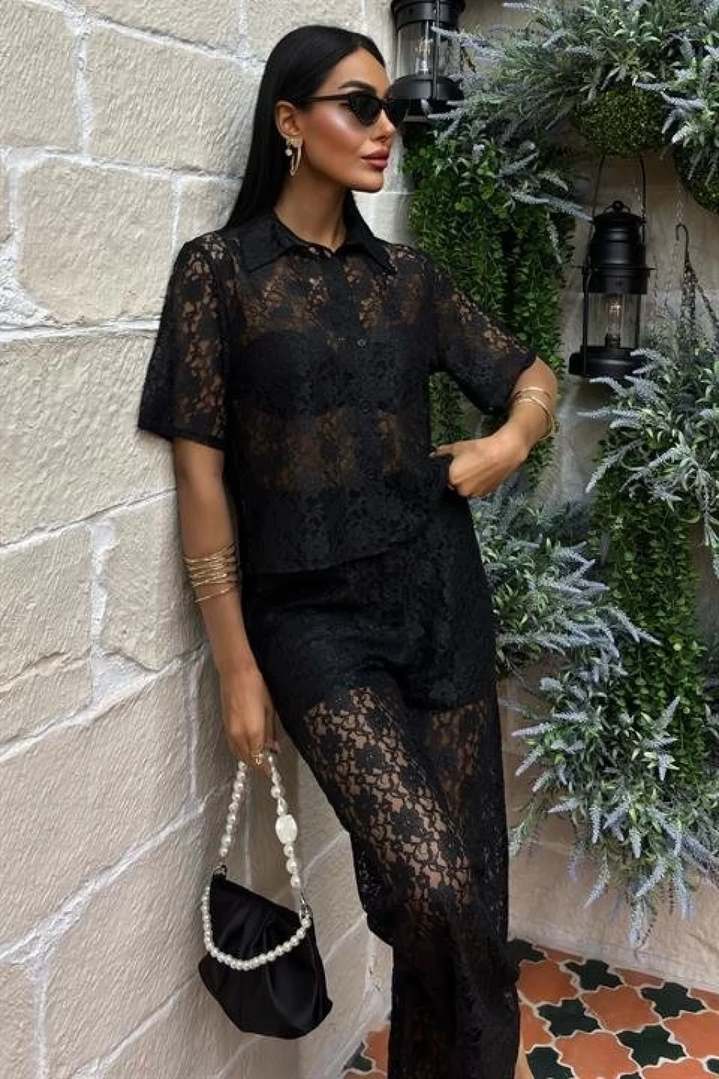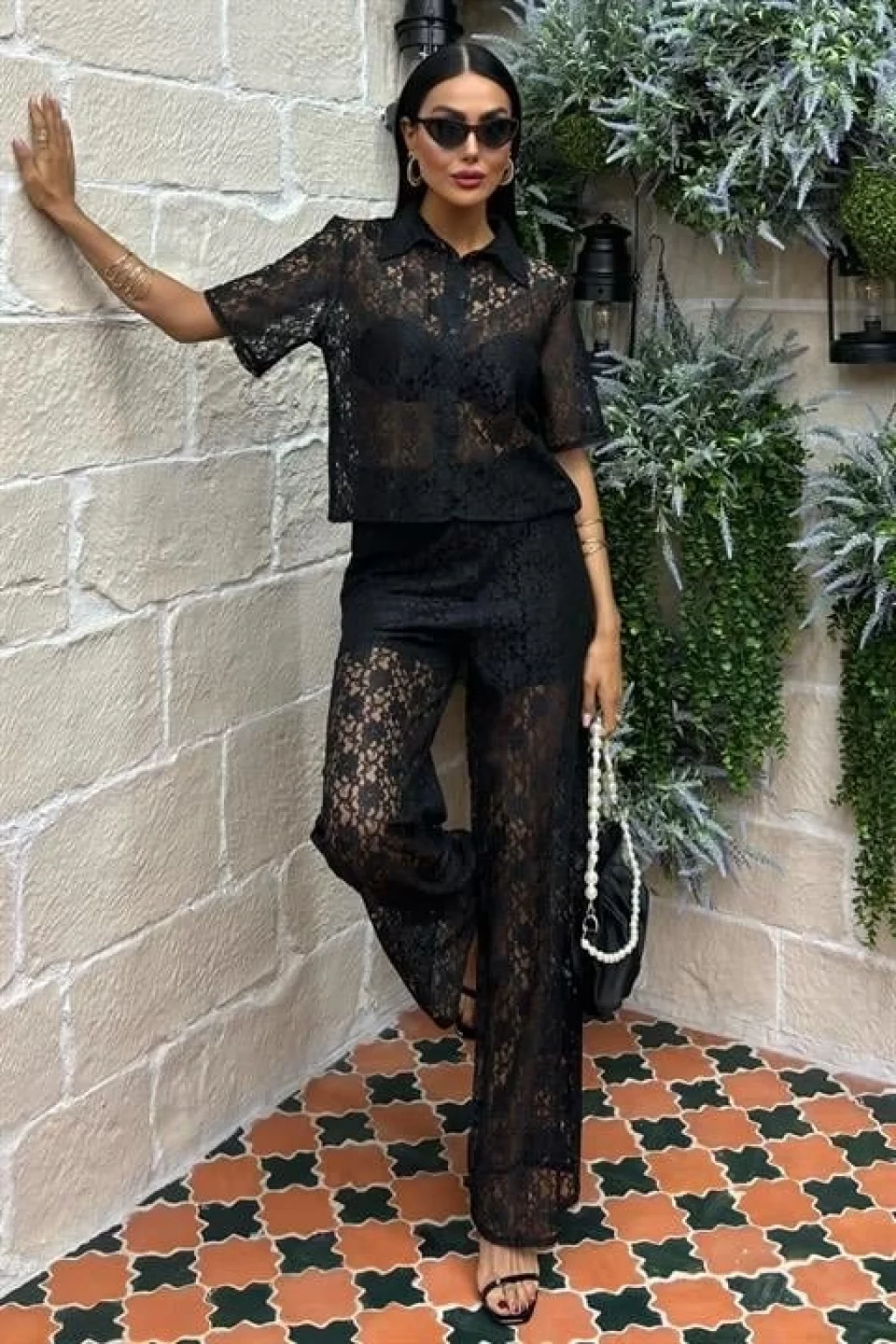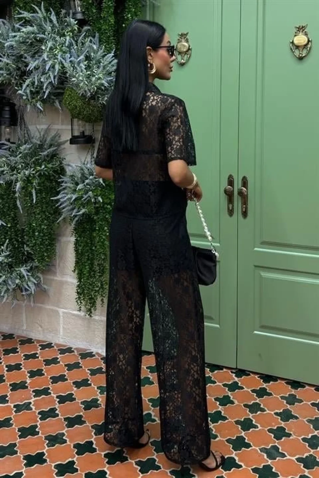 Pantolonu Astarlı Dantel İkili Takım 10119