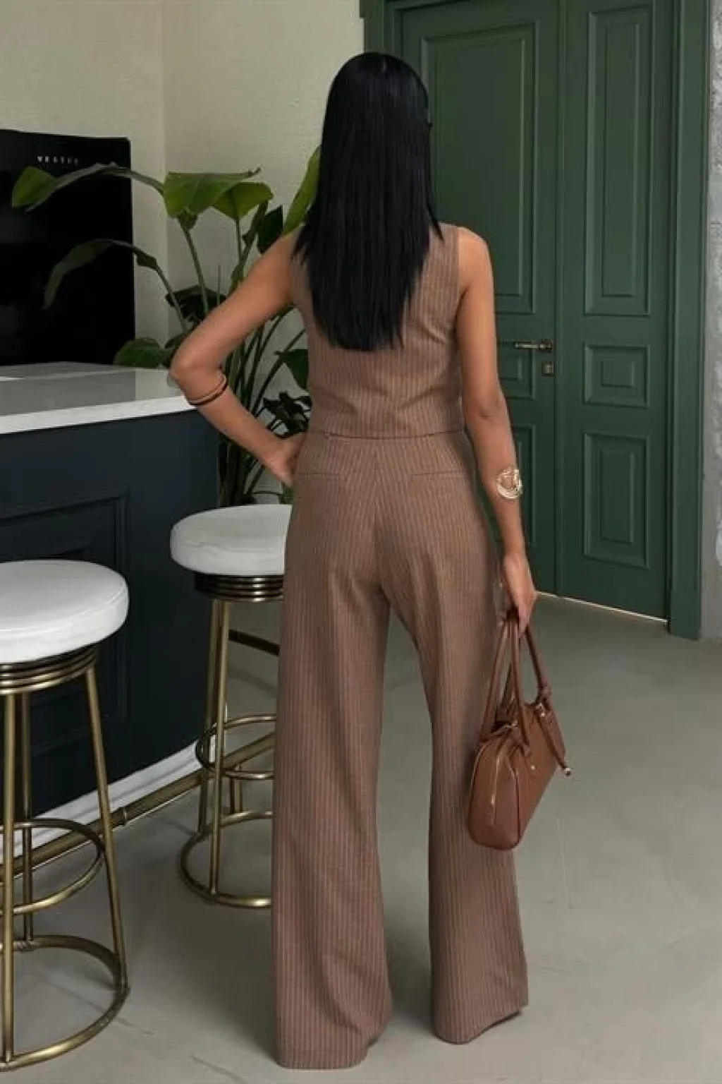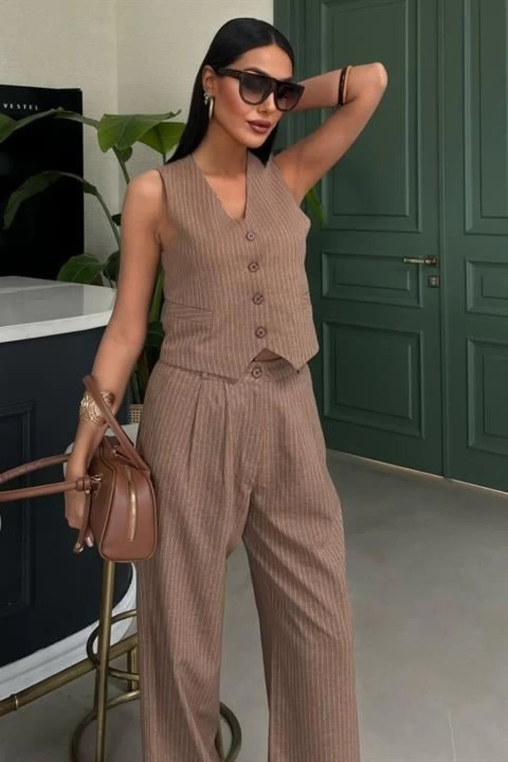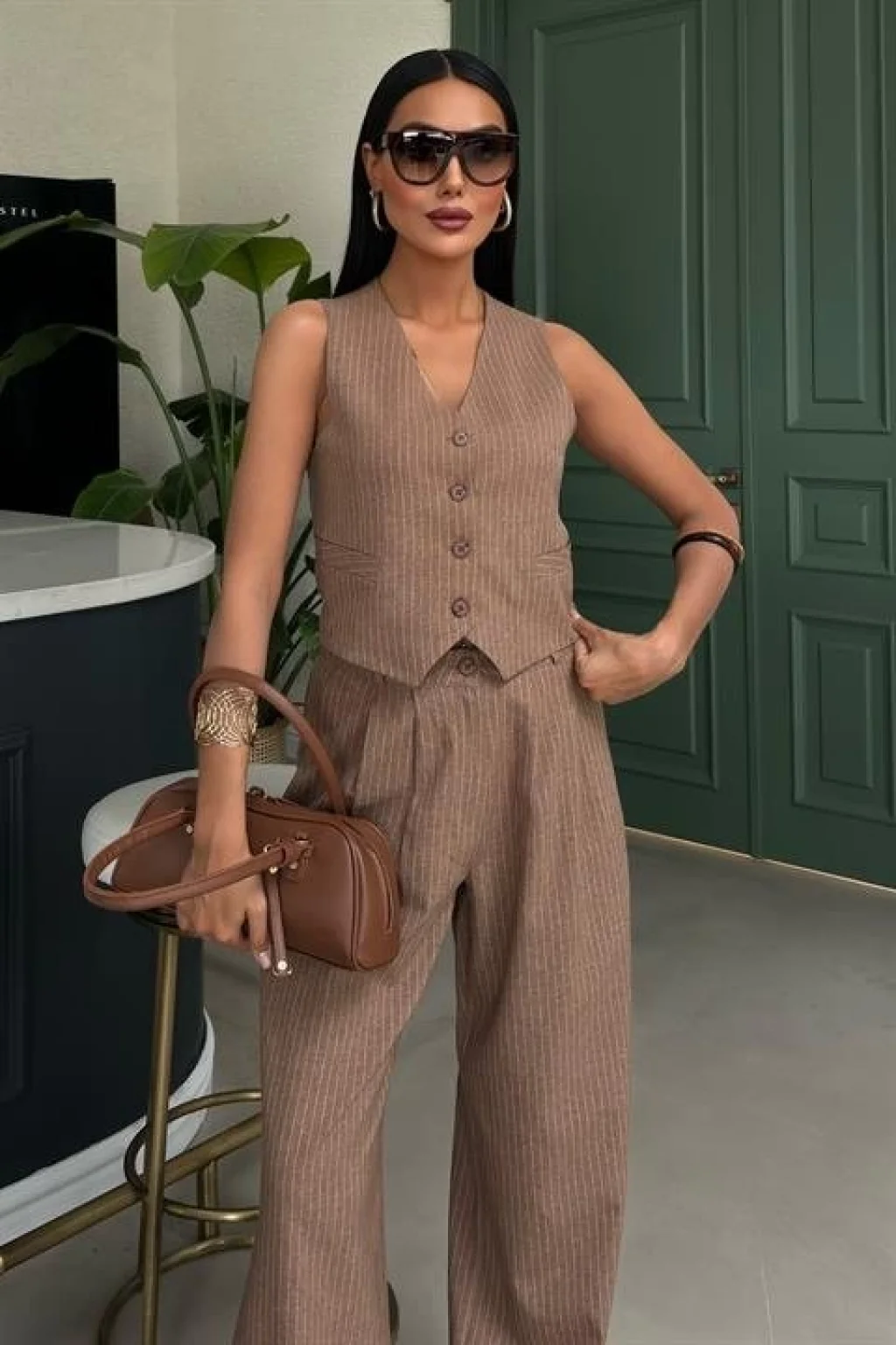Yelek Ve Pantolon Çizgili Double Takım 10017