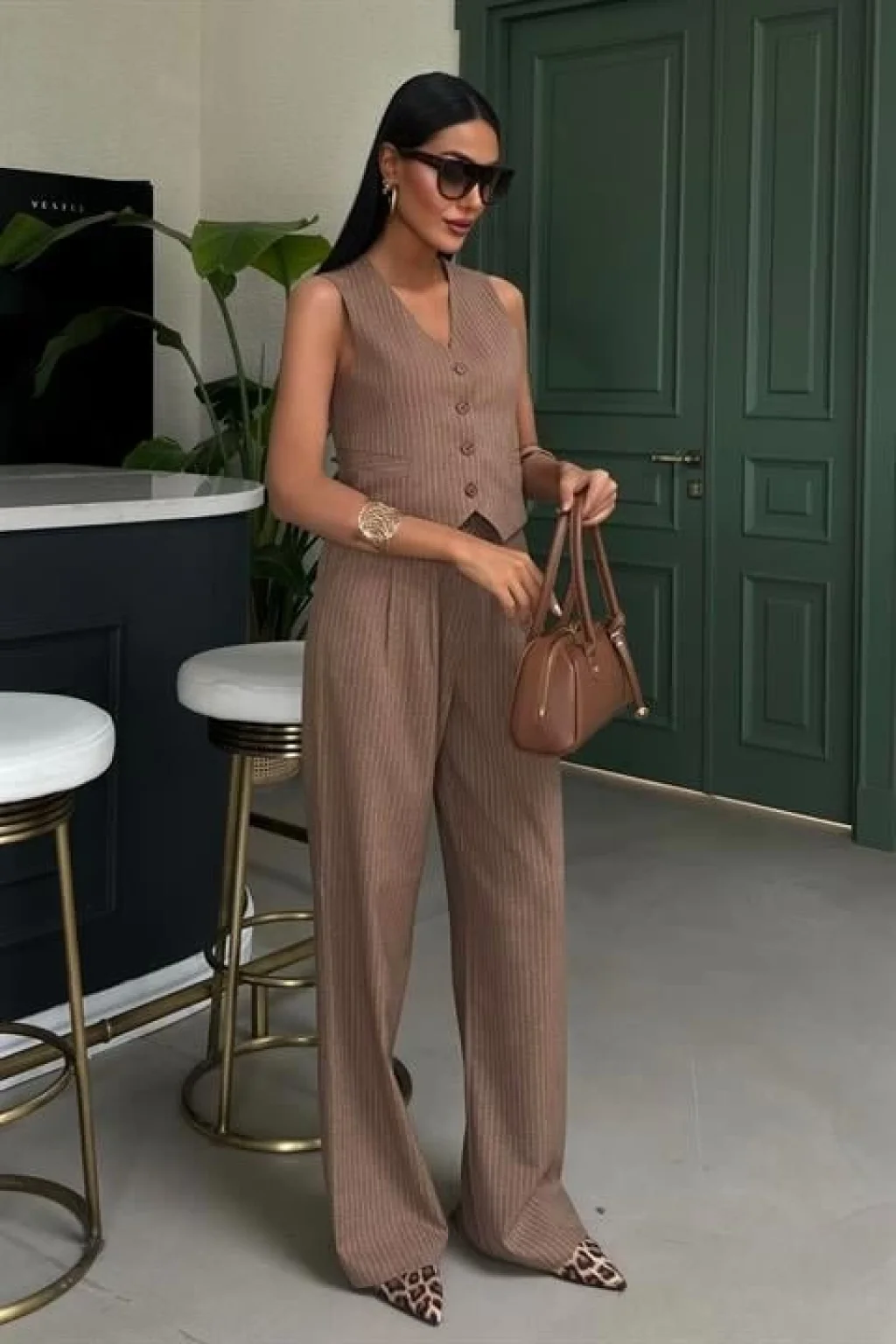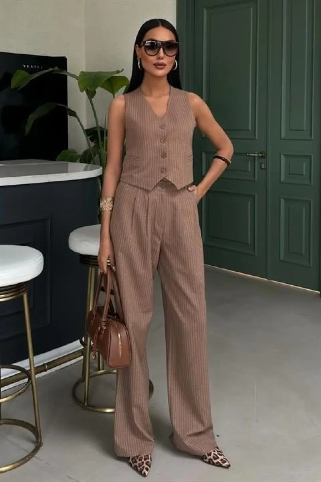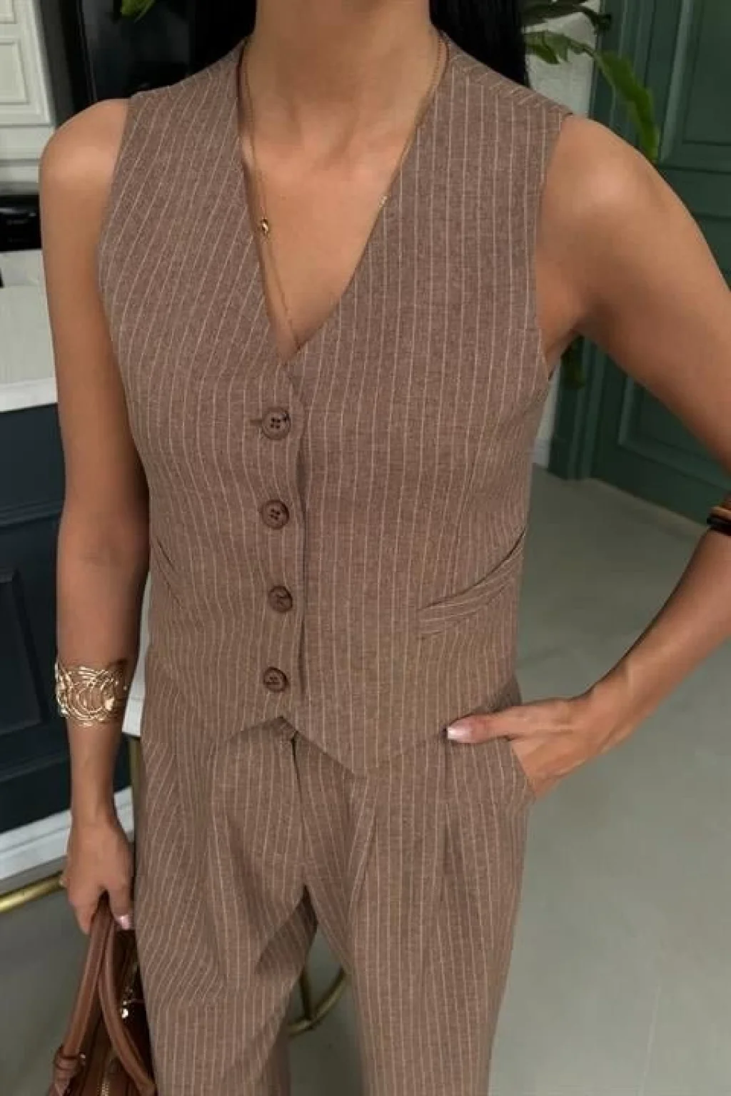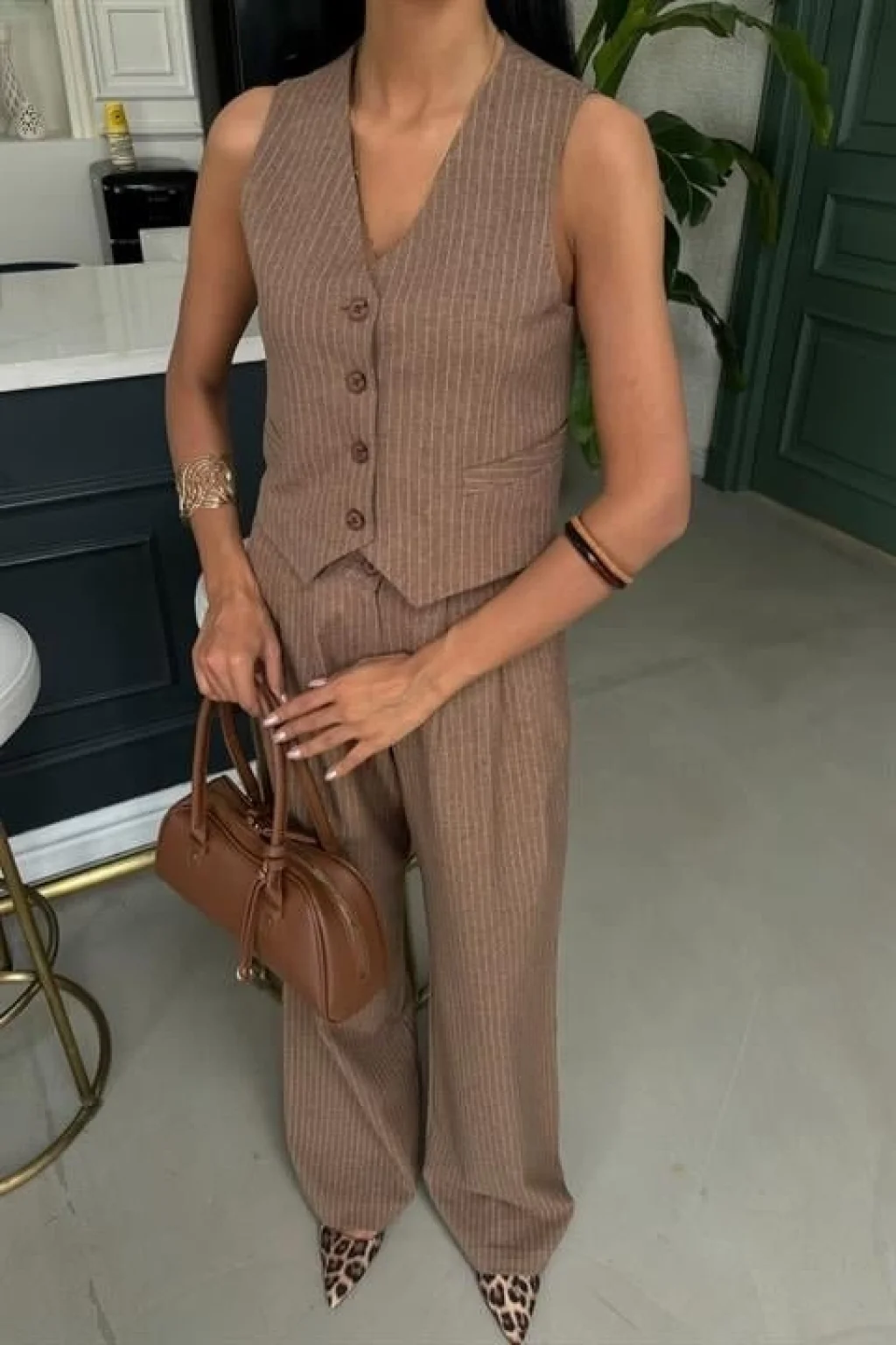 Yelek Ve Pantolon Çizgili Double Takım 10017