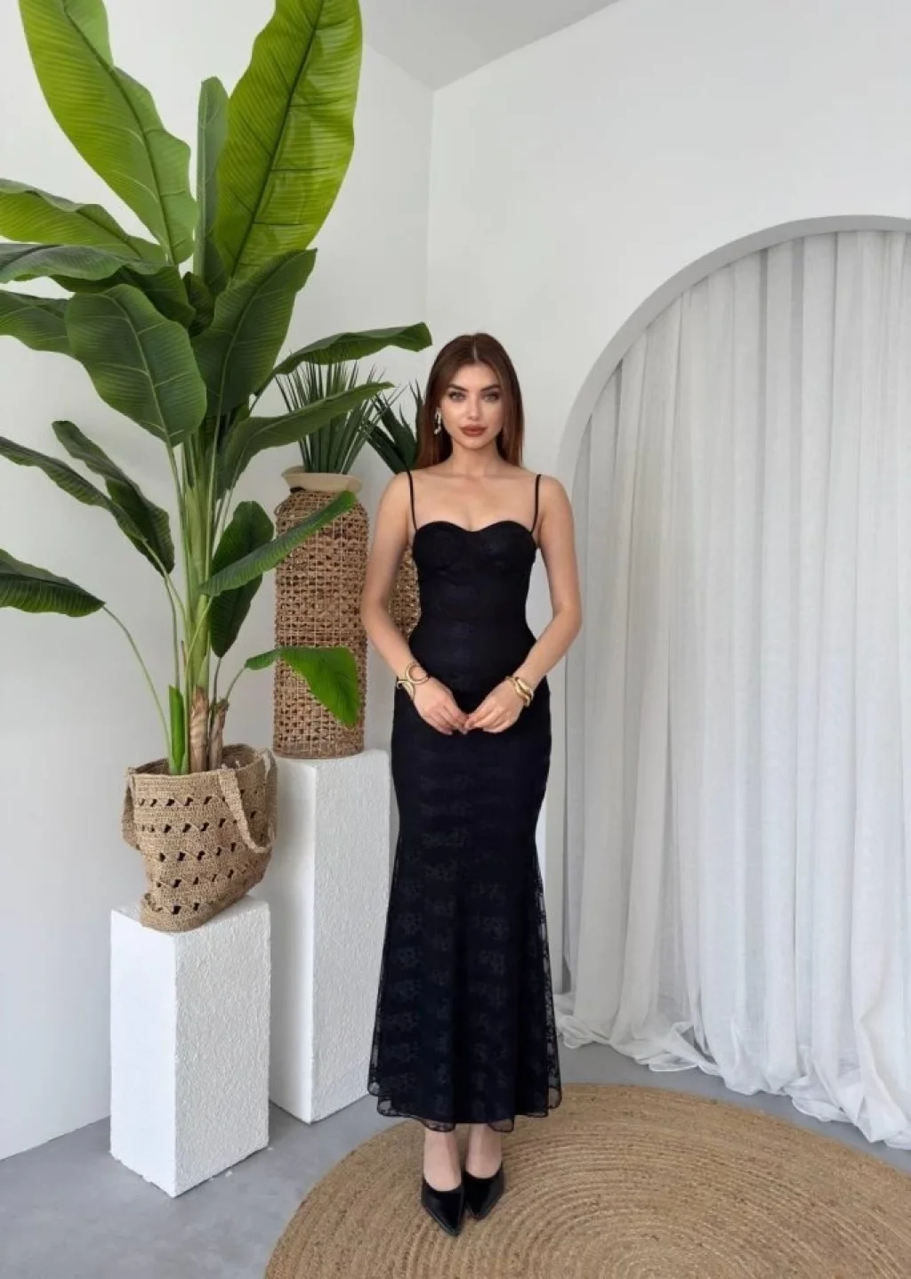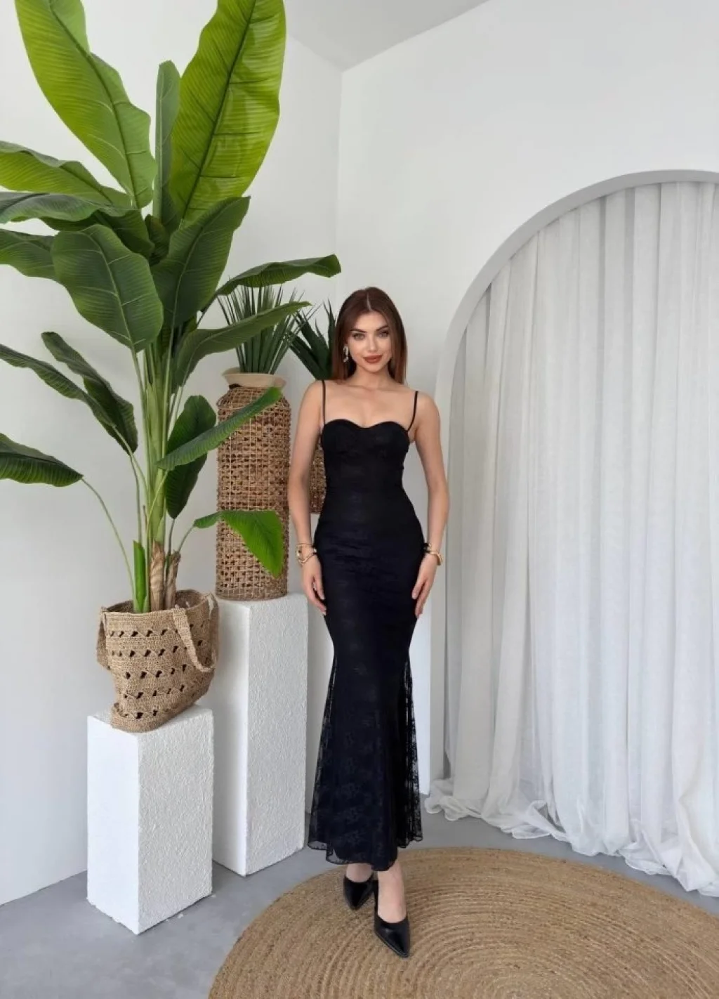 <p>Kalıse İp Askılı Elbise</p><br> <p>Modelin Ölçüleri: Boy:165, Kg:55, Göğüs:90, Bel:72, Kalça: 100</p><br> <p>Modelin üzerindeki ürün M/38 bedendir</p><br> <ul> </ul>