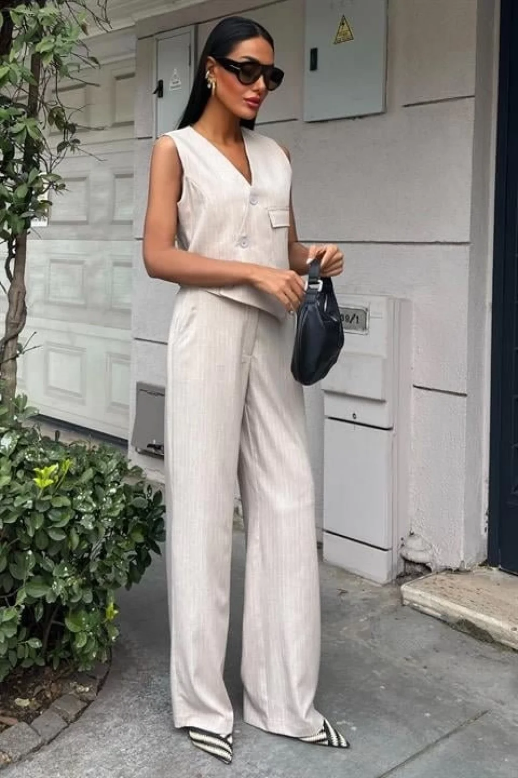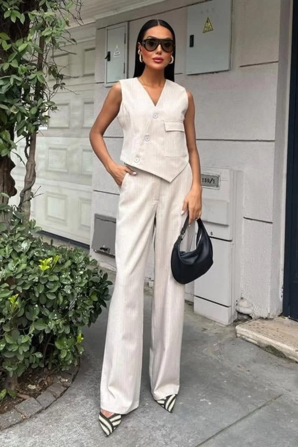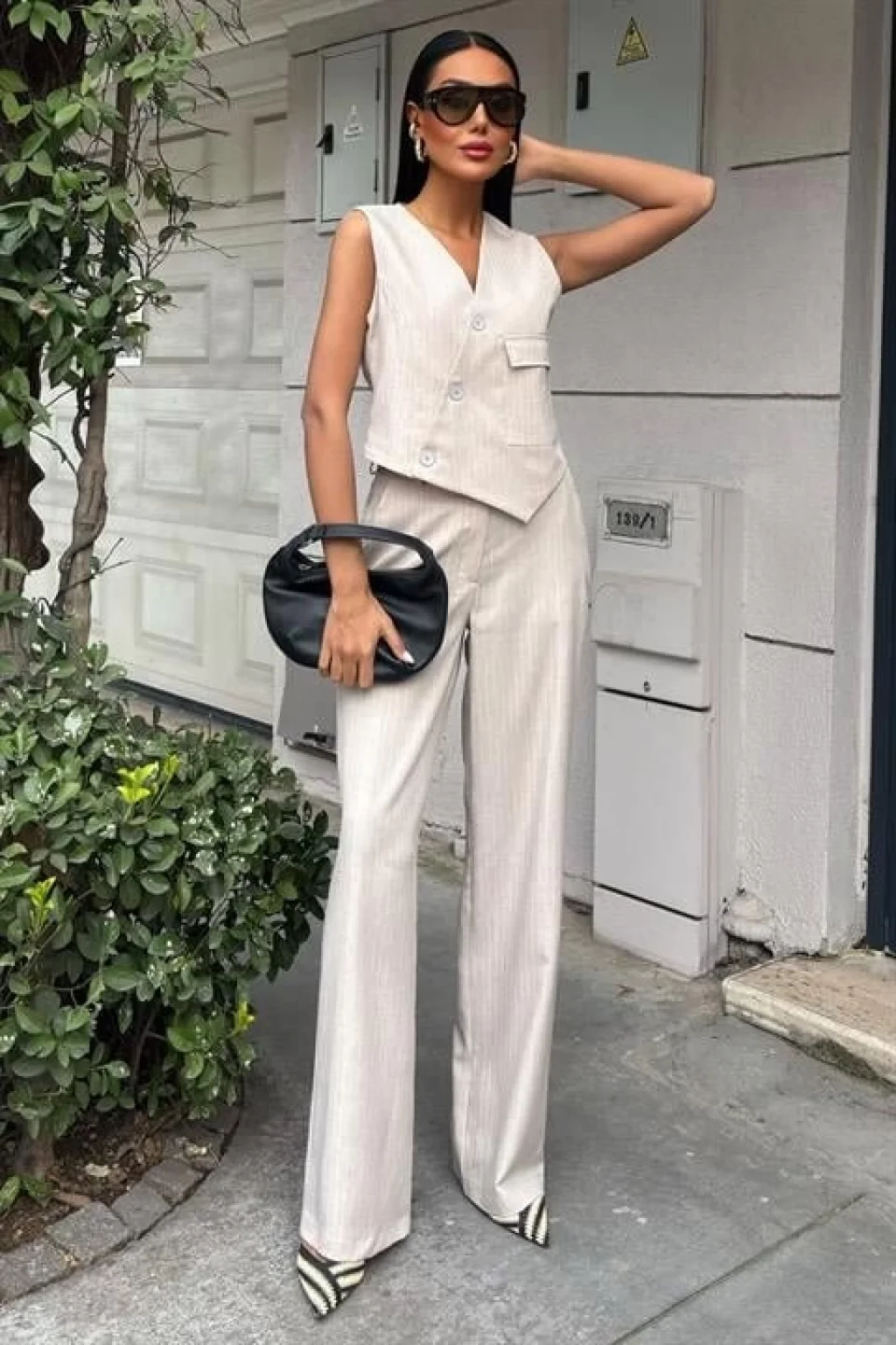 Yeleği Çapraz Detay Düğmeli Cepli Yelekli Takım 10150
