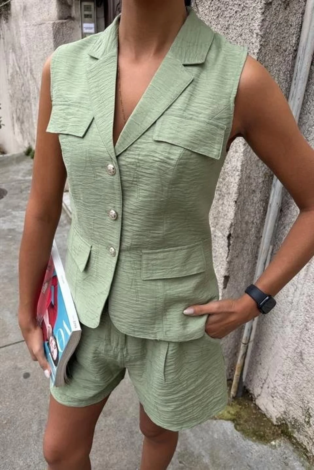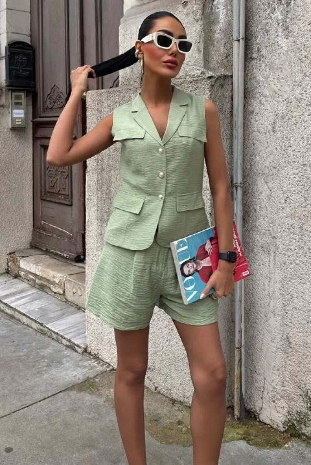 KETEN YELEK - ŞORT TAKIM - Mavi