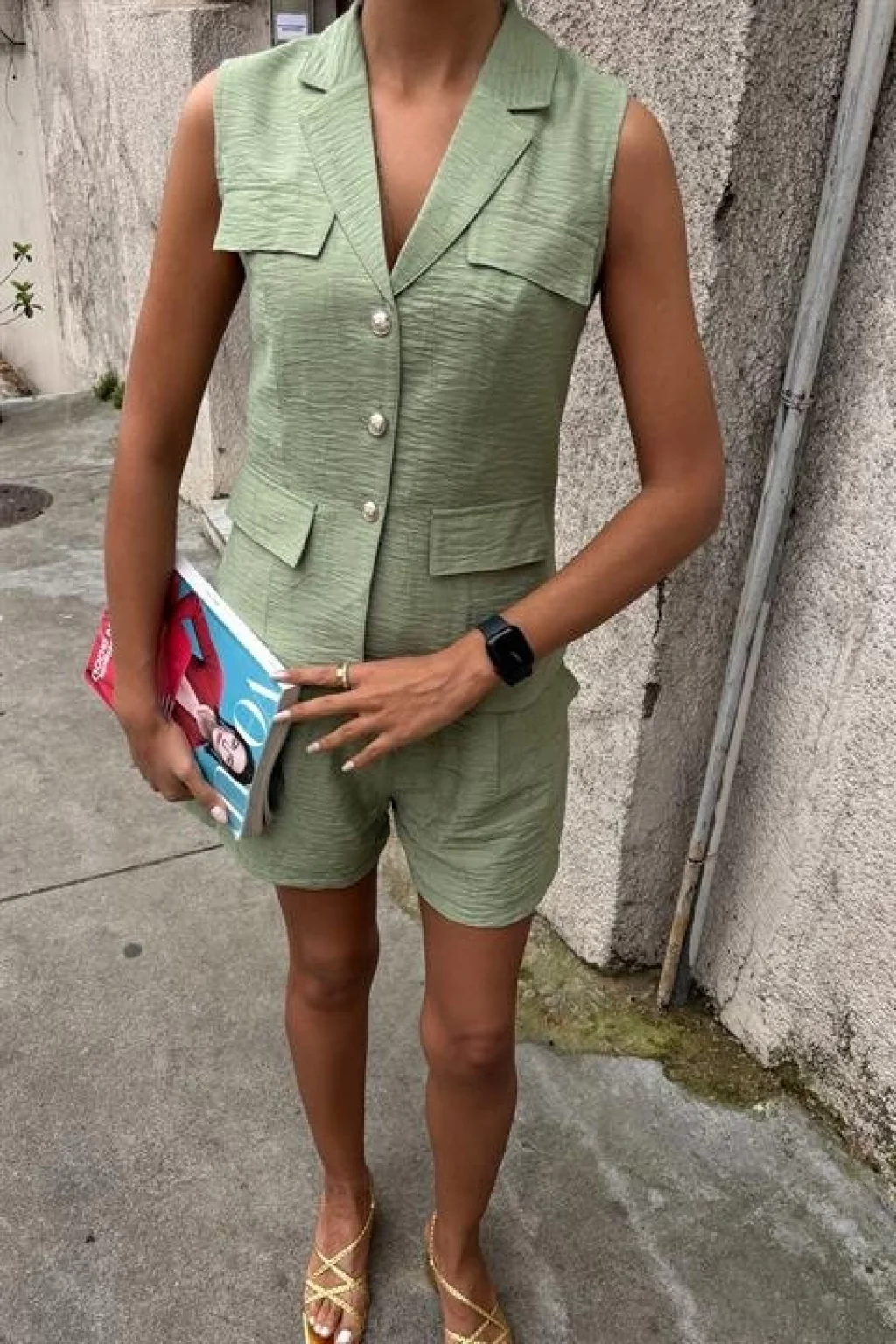 <p>Yelek Şort Viscon Takım 10156-17</p><br> <p>Modelin Ölçüleri: Boy:165, Kg:55, Göğüs:90, Bel:72, Kalça: 100</p><br> <p>Modelin üzerindeki ürün M/38 bedendir</p><br> <ul> </ul>
