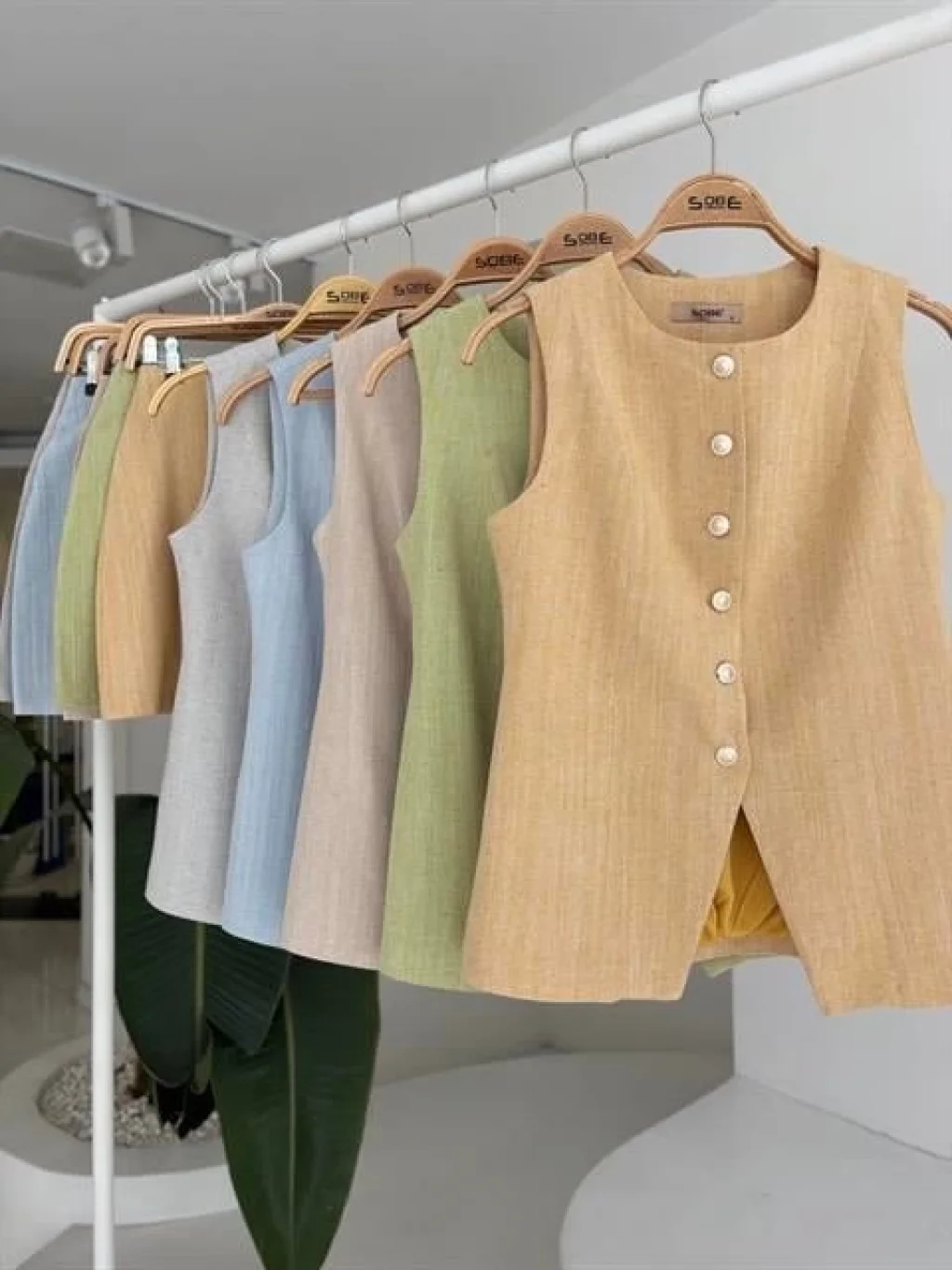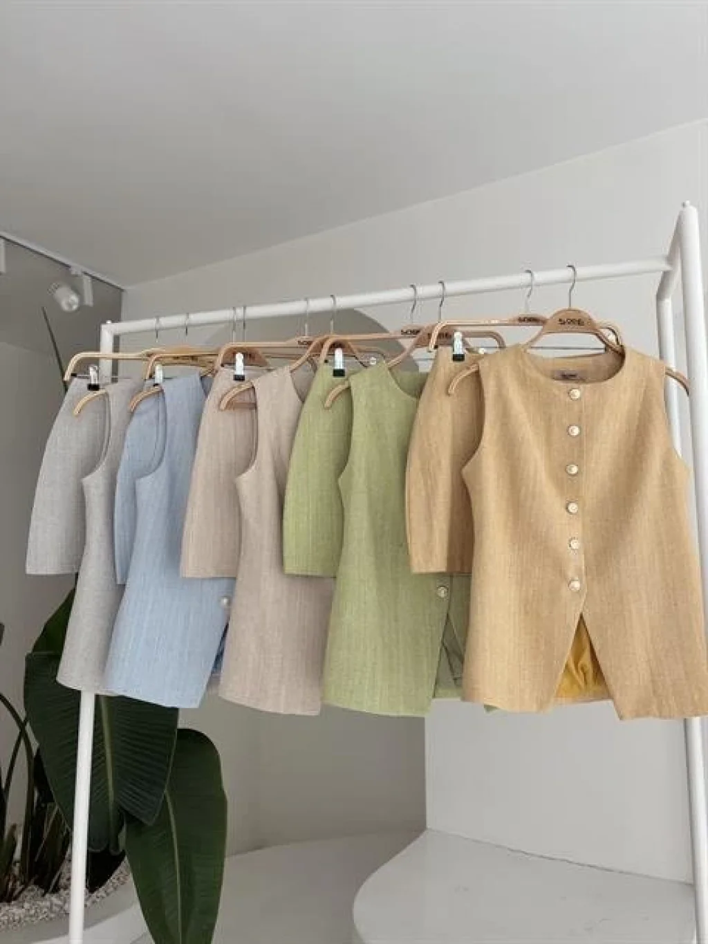 KETEN YELEK - ŞORT TAKIM - Mavi