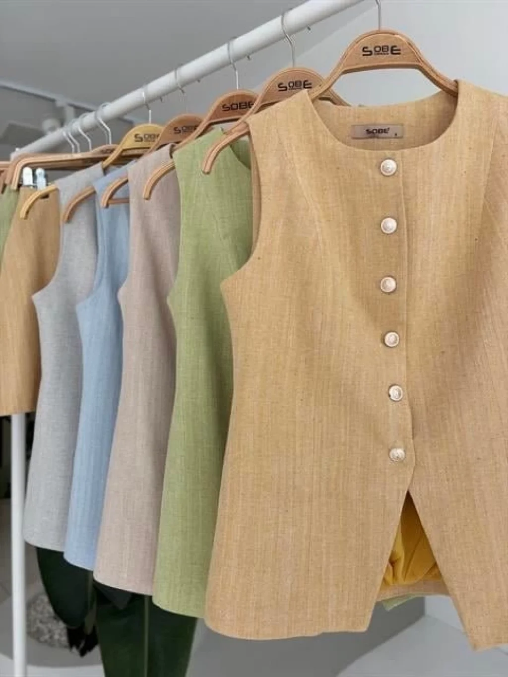 Kadın Sıfır Kollu önden Düğmeli Atlas Yelek