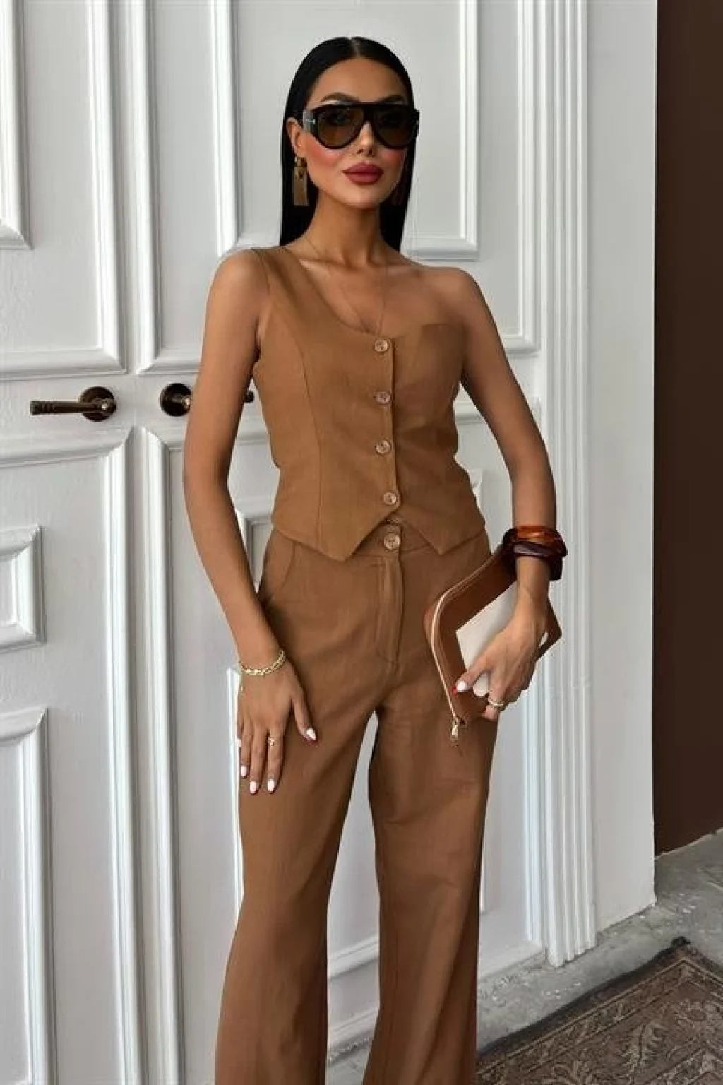 Tek Omuz Büstiyer Plazzo Pantolon Viscon Takım 10159