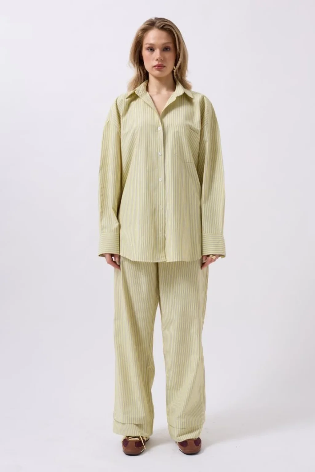 Kadın Uzun Kollu Fırfır Yakalı önden Düğmeli çizgili Burgu Gömlek