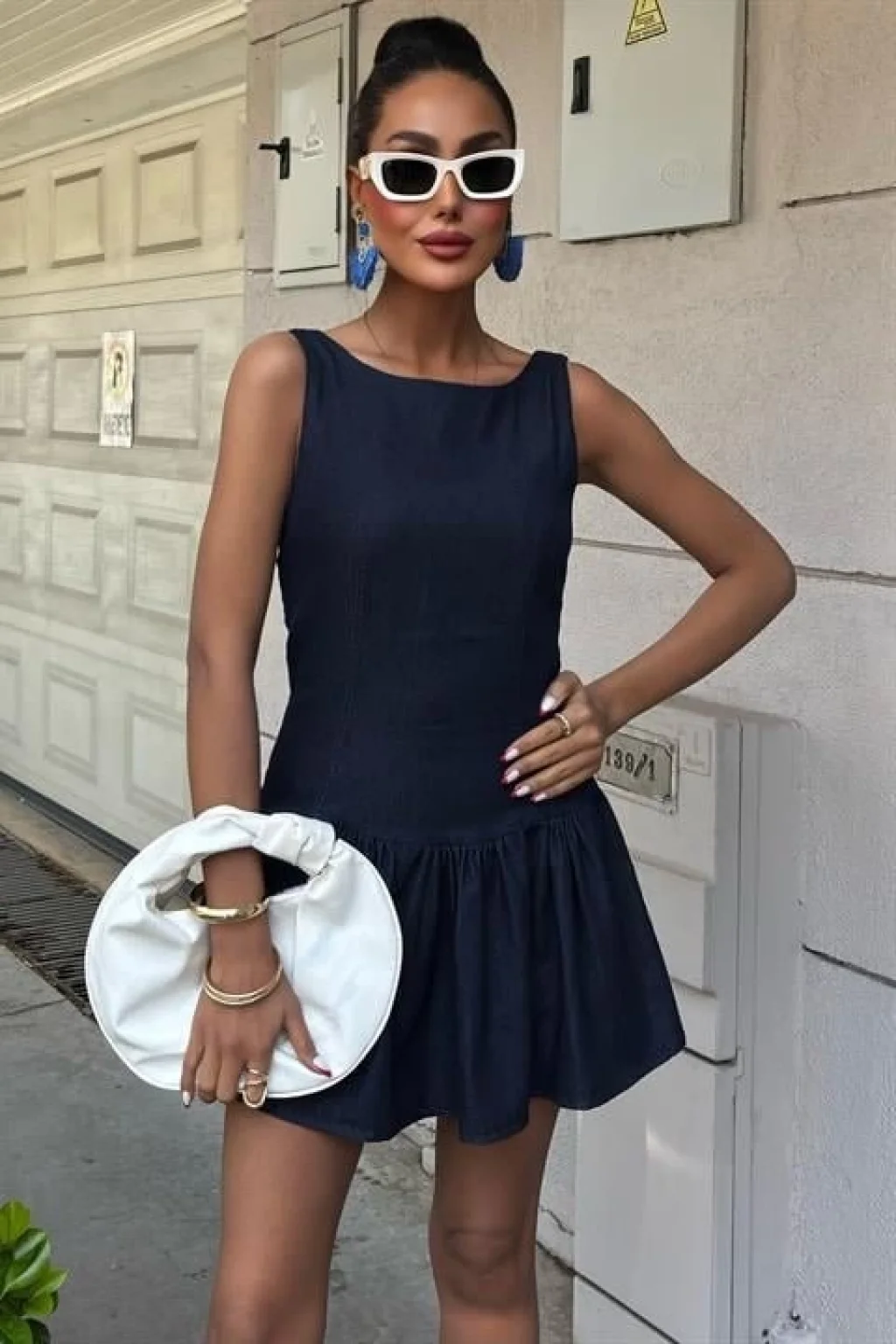 Balon Etekli Tensel Mini Elbise 2887