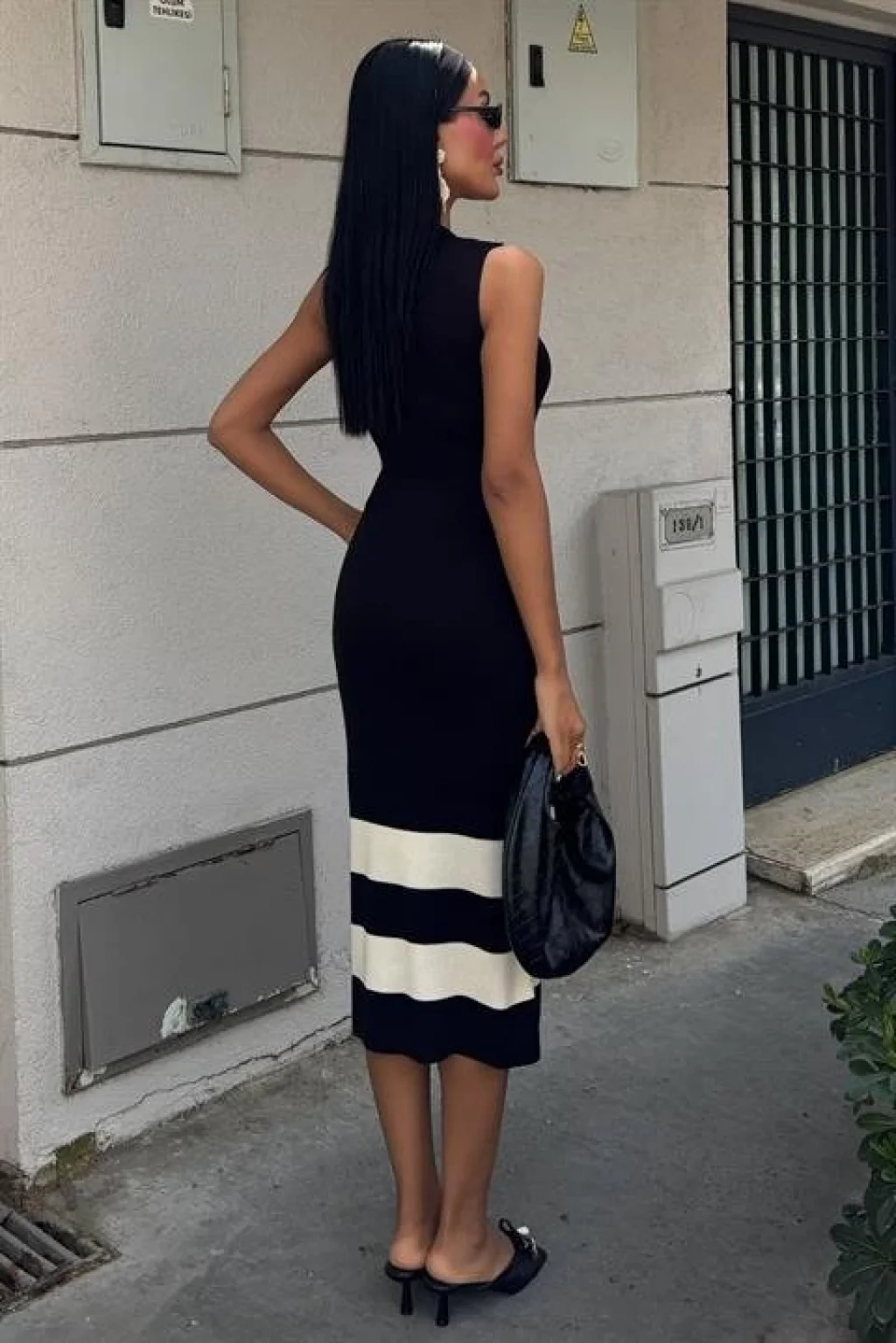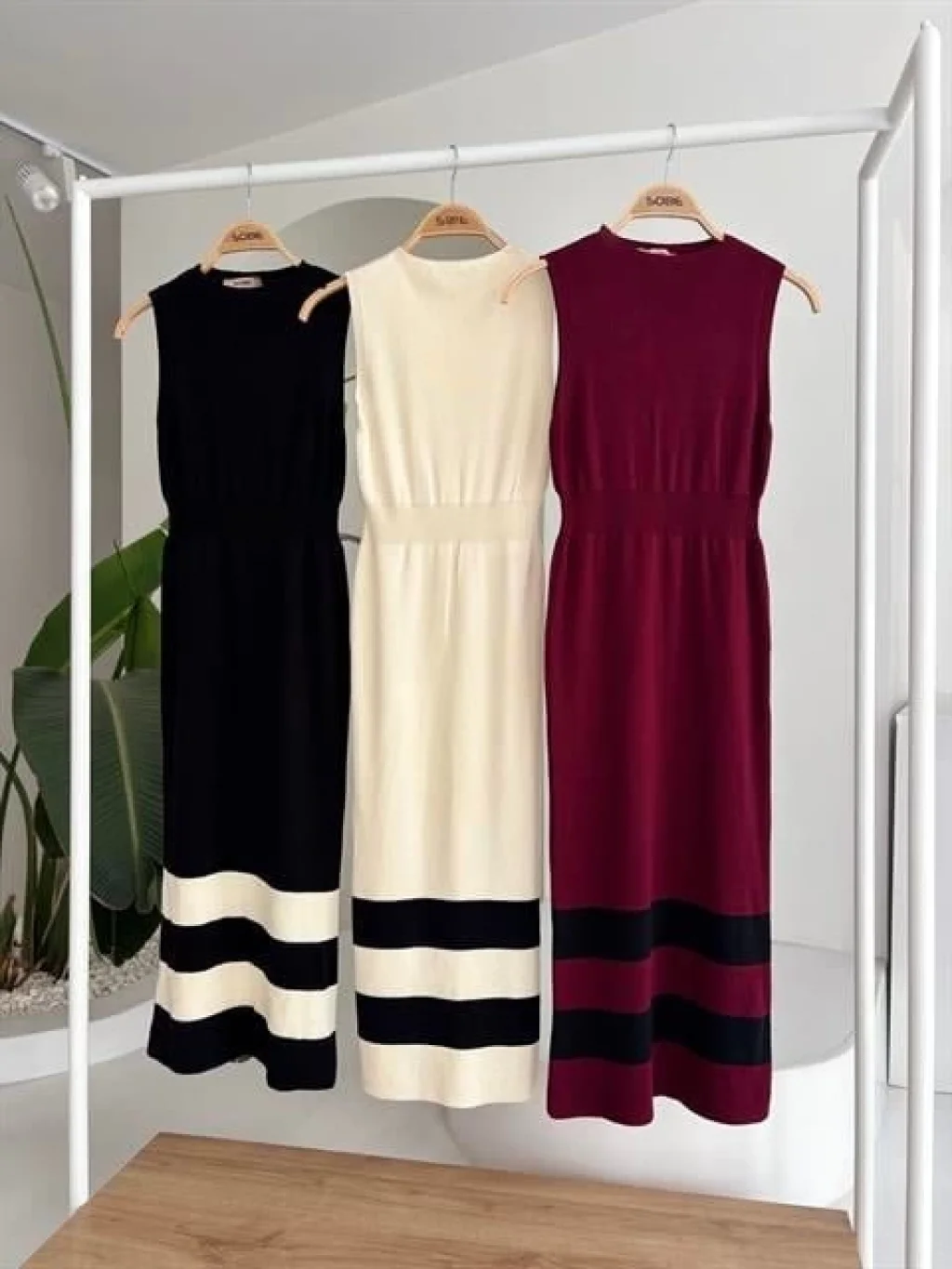 Etek Ucu Şerit Detaylı Triko Elbise 2831