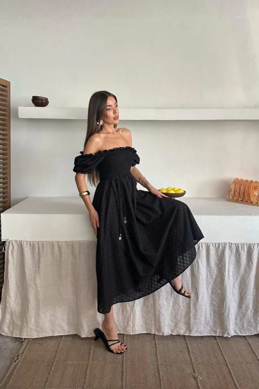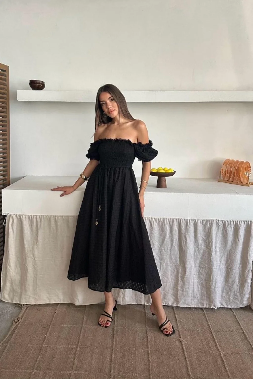 <p>Siyah Gipeli Brode Elbise</p><br> <p>Modelin Ölçüleri: Boy:165, Kg:55, Göğüs:90, Bel:72, Kalça: 100</p><br> <p>Modelin üzerindeki ürün M/38 bedendir</p><br> <ul> </ul>