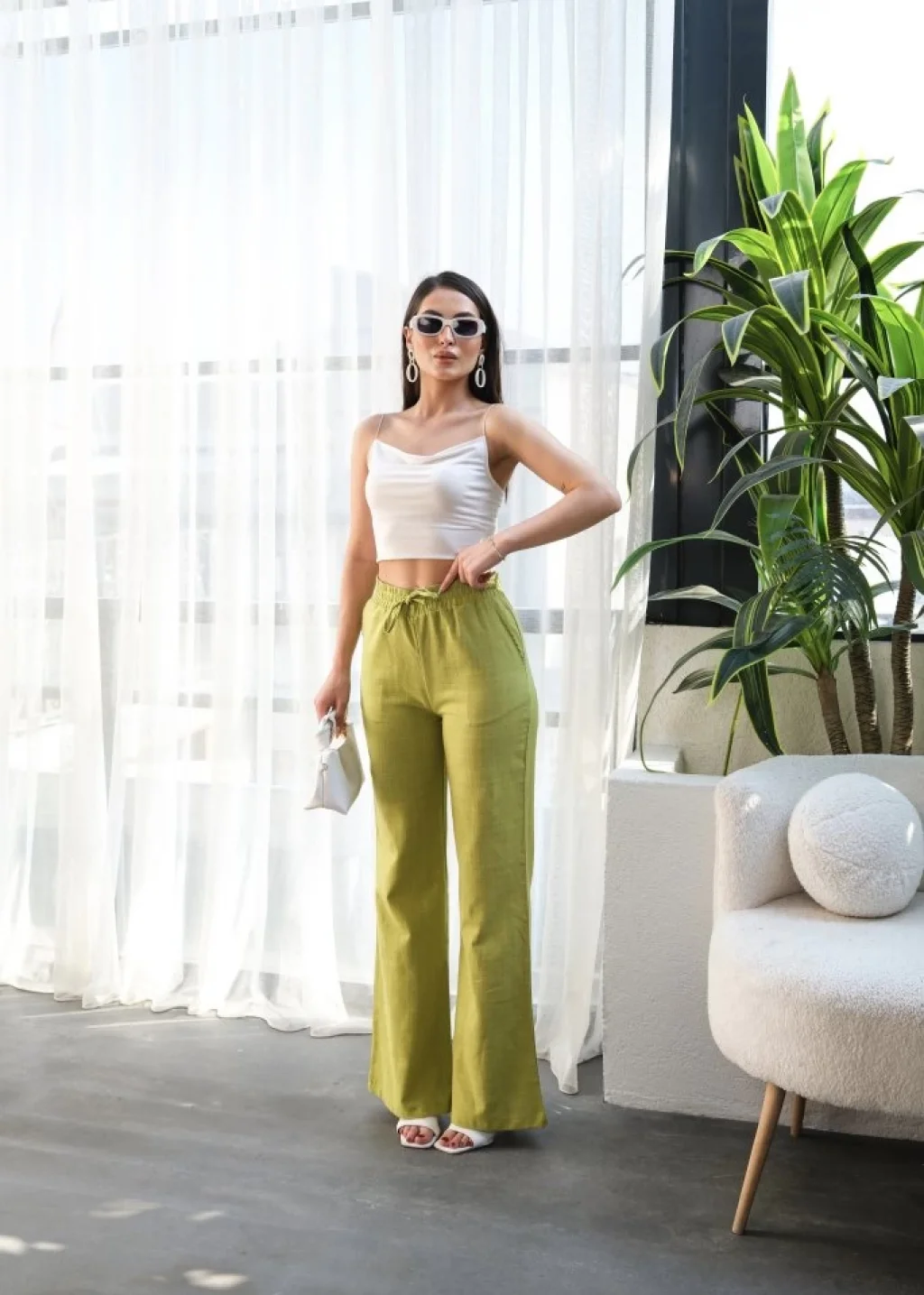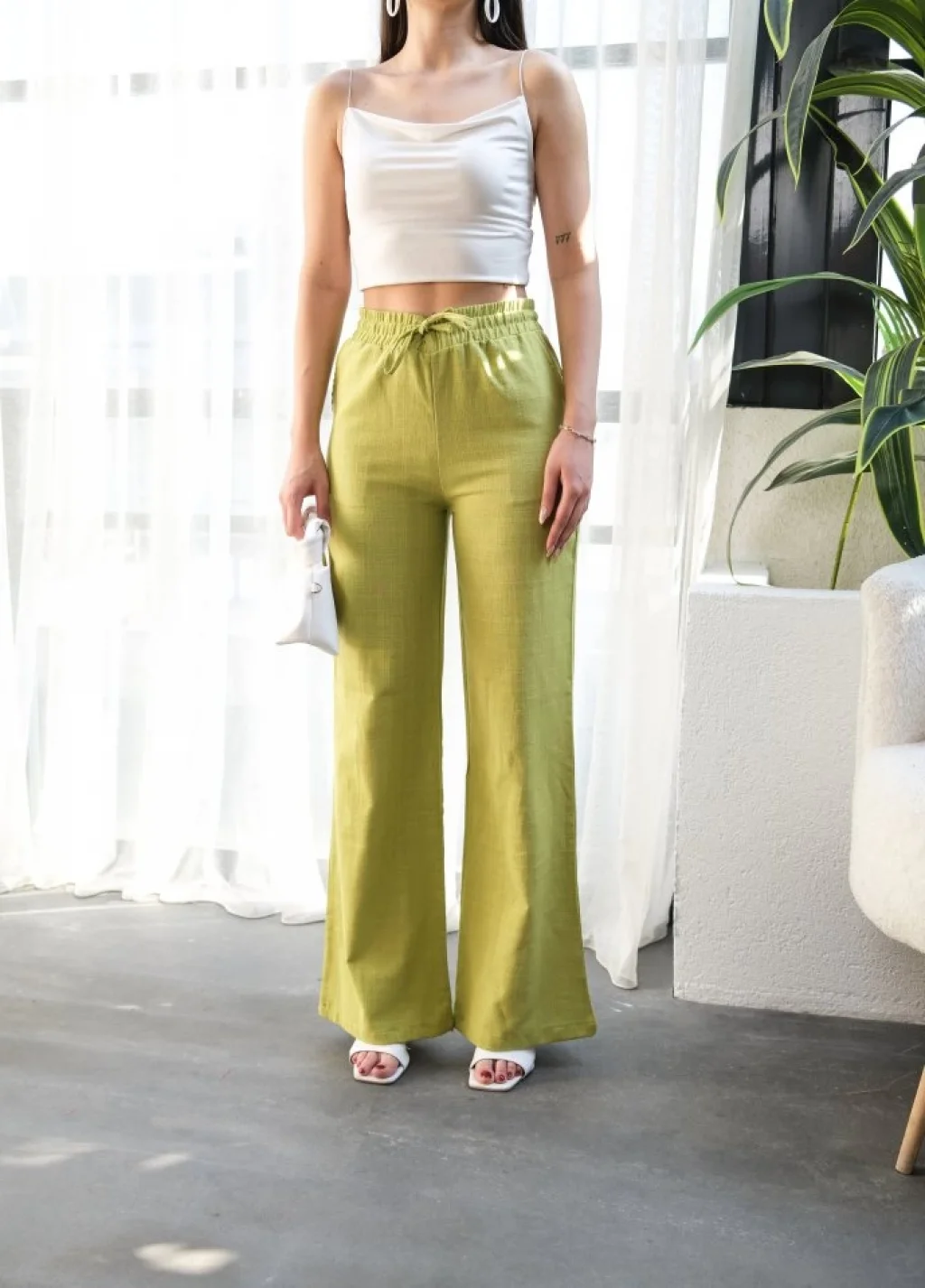 Beli̇ Lasti̇kli̇ Ve Bağcikli Keten Pantolon
