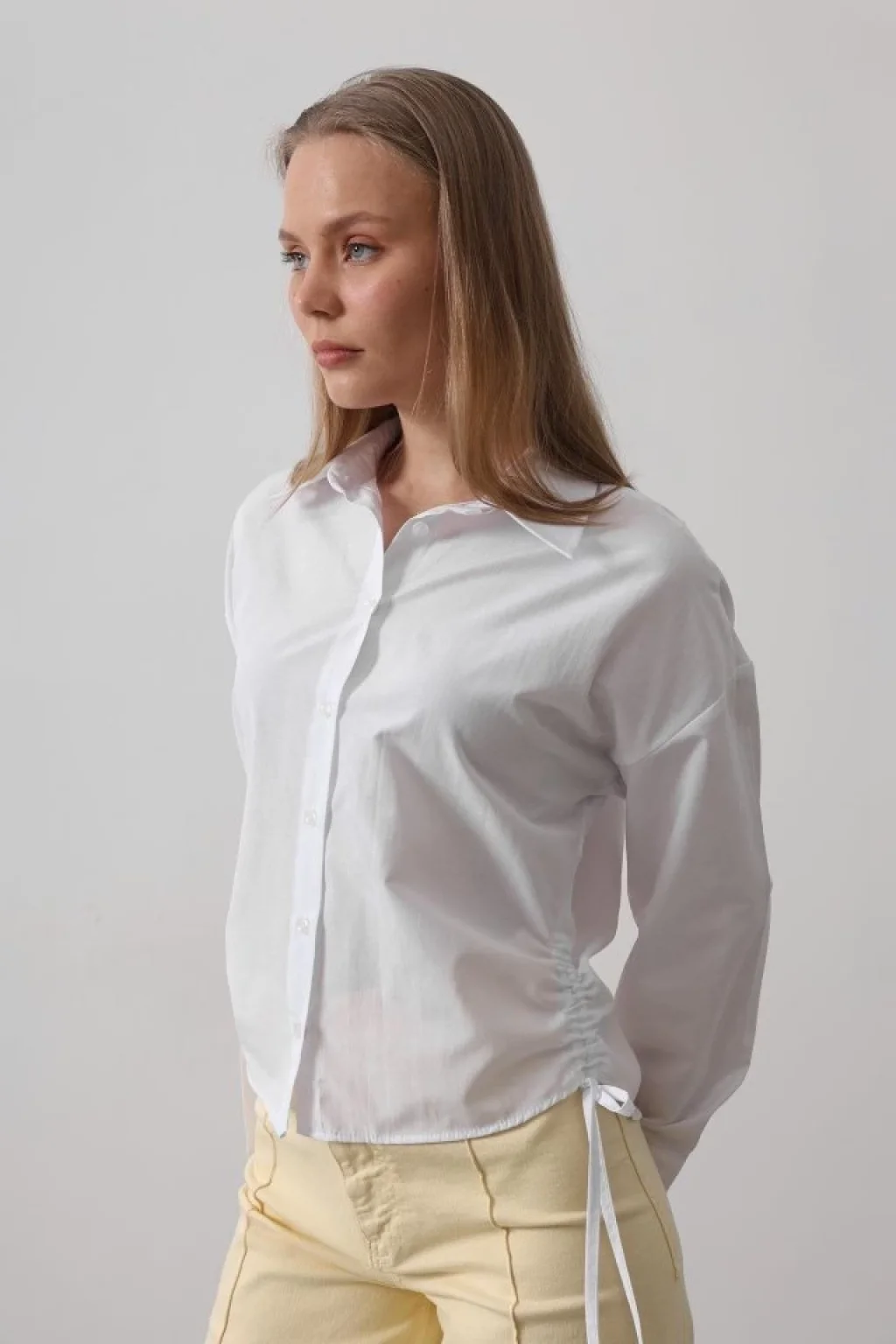 Yanları Bağlamalı Basic Gömlek - Beyaz