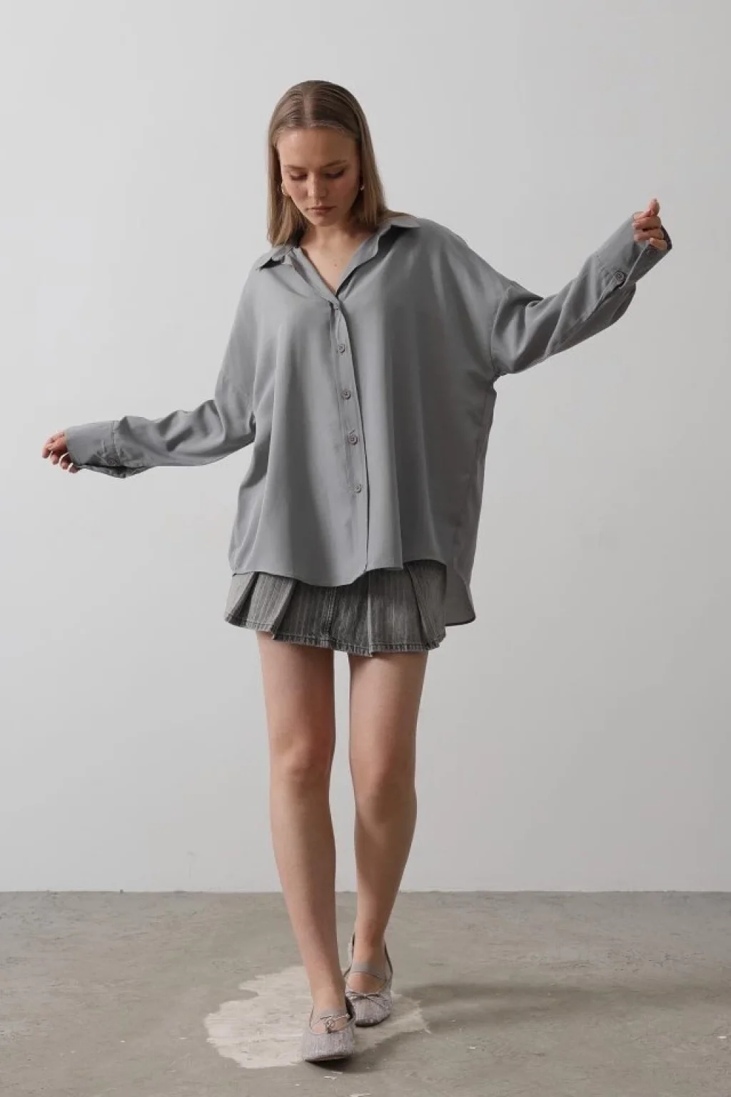Geniş Manşet Detaylı Gömlek - Gri