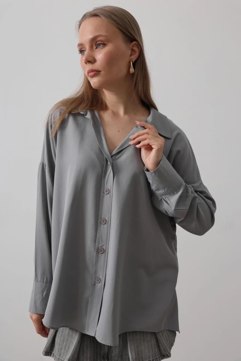 Kadın Uzun Kollu Oversize Gömlek