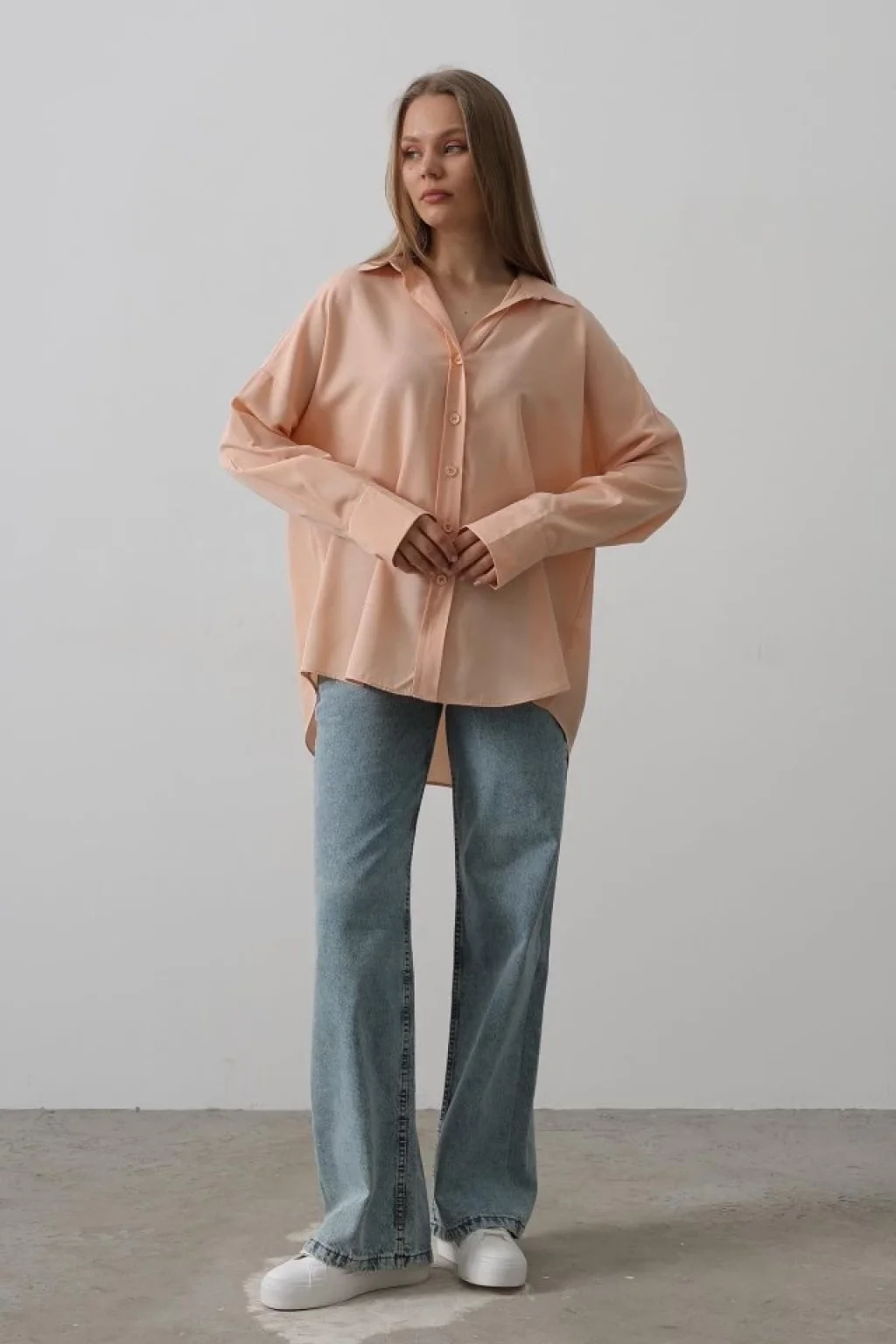 Geniş Manşet Detaylı Gömlek - Açık Somon