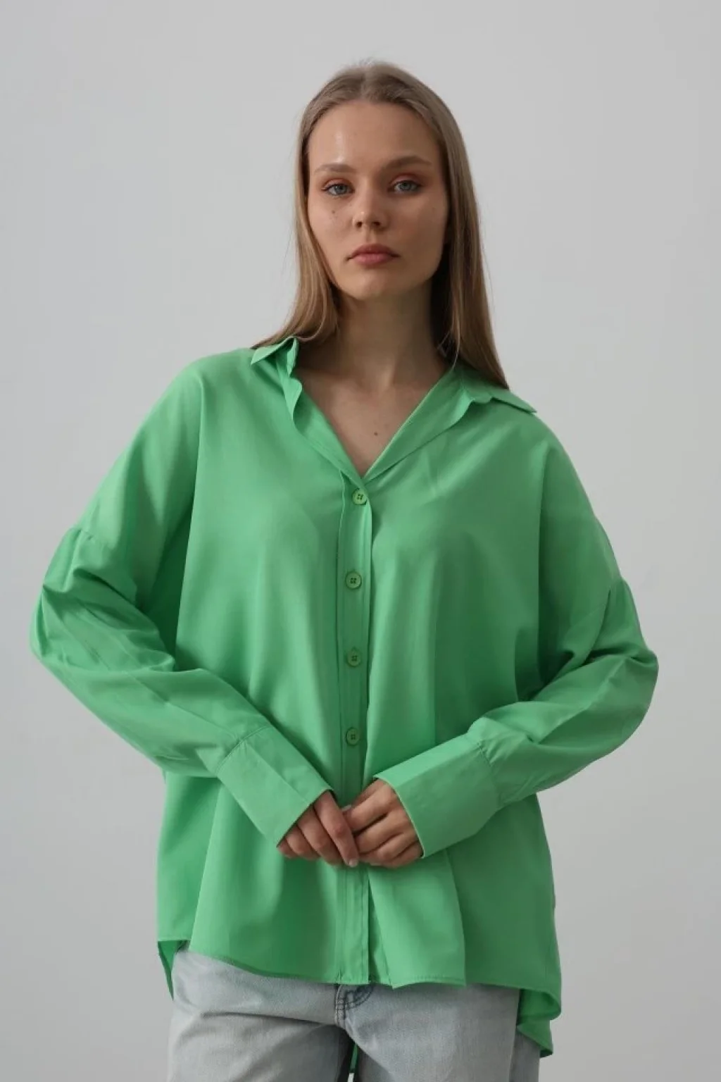 Kadın Dokuma Viskon Kumaş V Yaka Dekolte Ve Metal Düğme Detaylı Gömlek