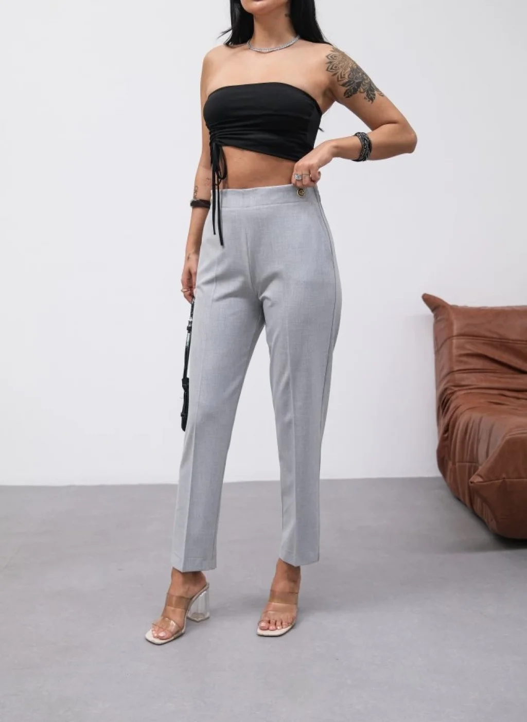 Kadın Yüksek Bel önden Zincir Detaylı Ithal Krep Pantolon