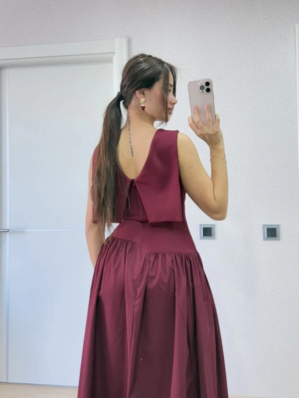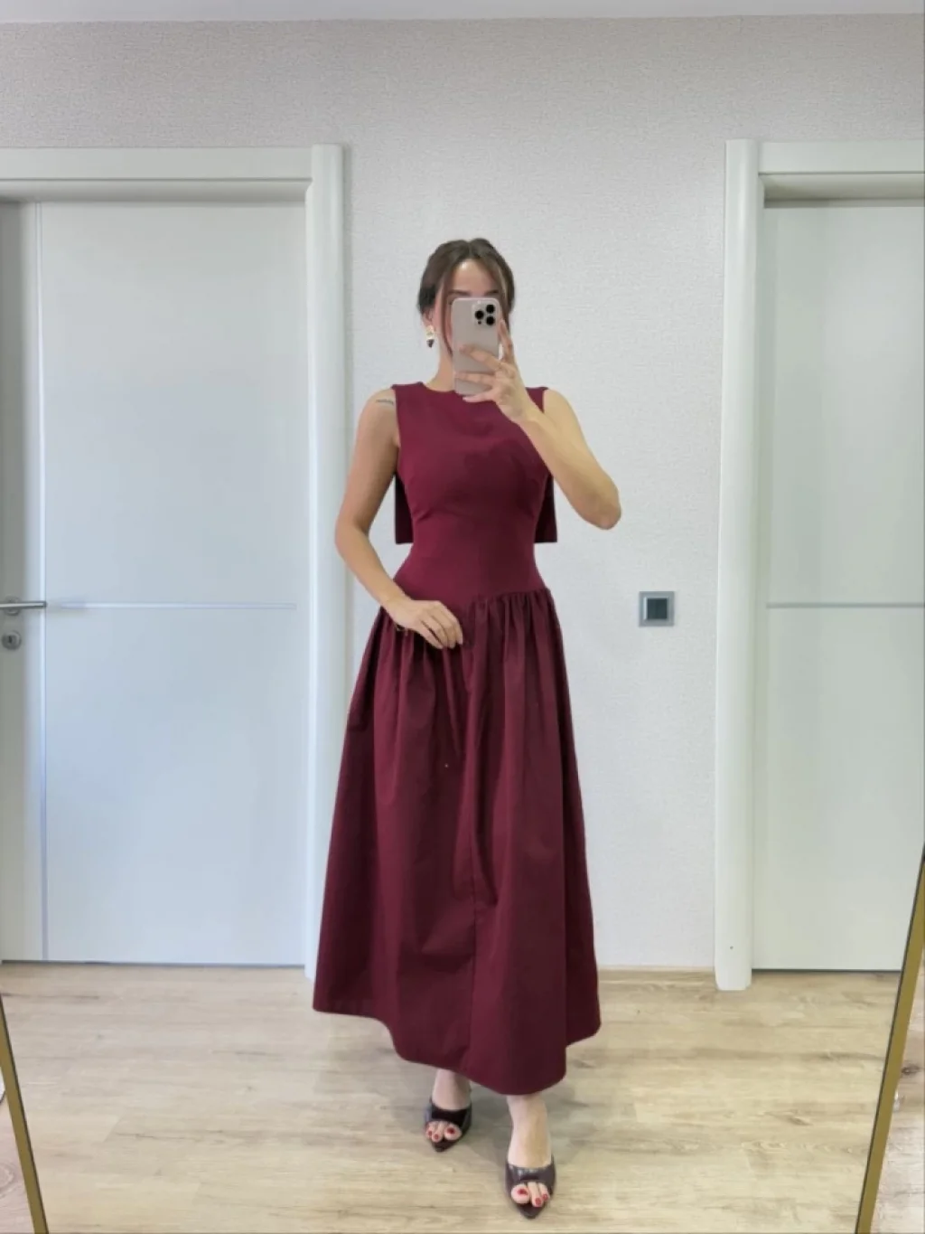 <p>Arkası Kanatlı Uzun Elbise- Bordo</p><br> <p>Modelin Ölçüleri: Boy:165, Kg:55, Göğüs:90, Bel:72, Kalça: 100</p><br> <p>Modelin üzerindeki ürün M/38 bedendir</p><br> <ul> </ul>
